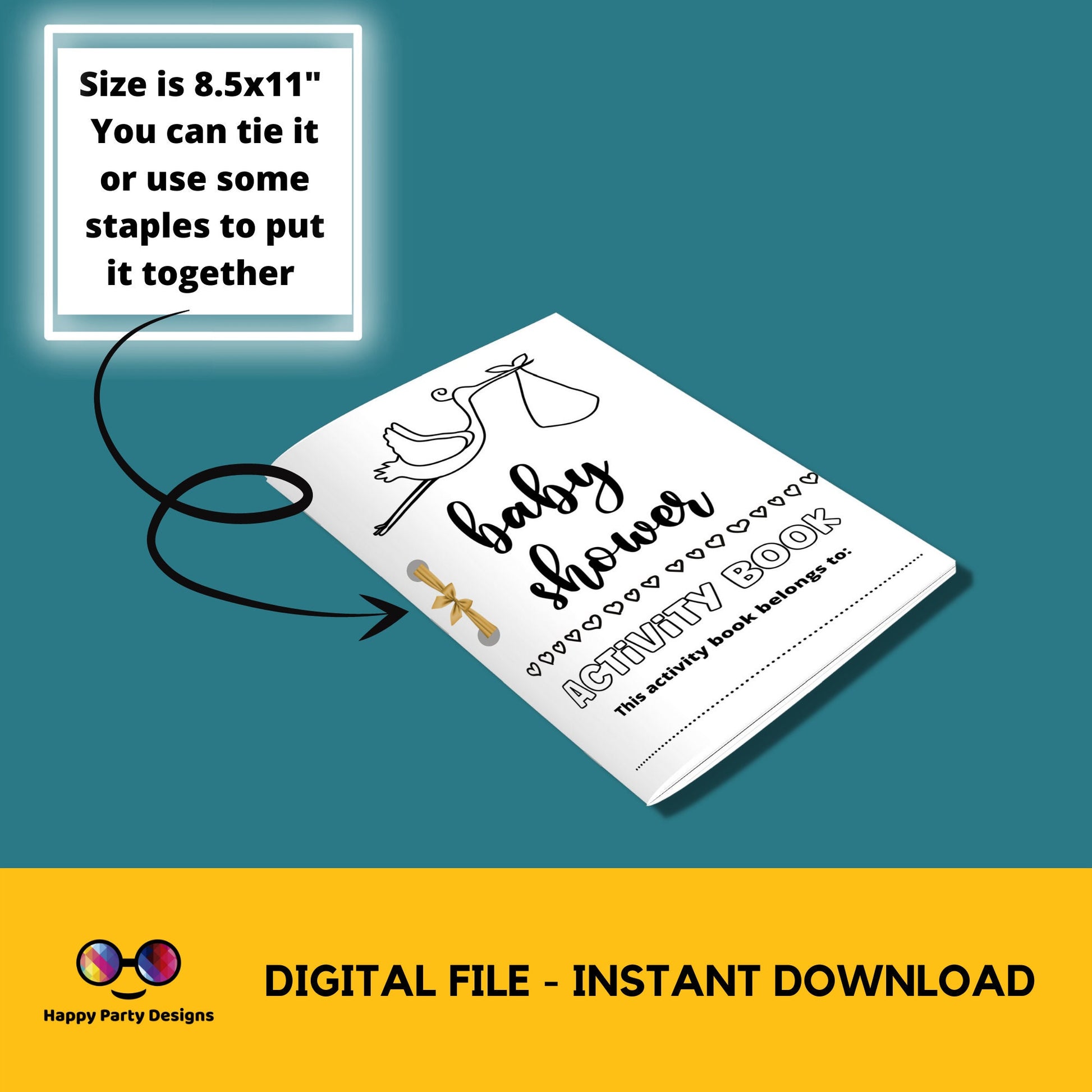 Instant Download Baby Shower Kids Activity Book and Coloring Pages.