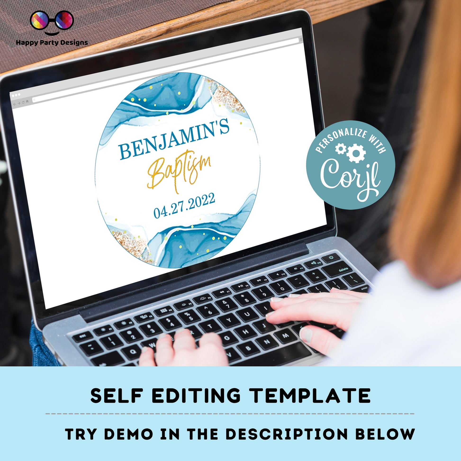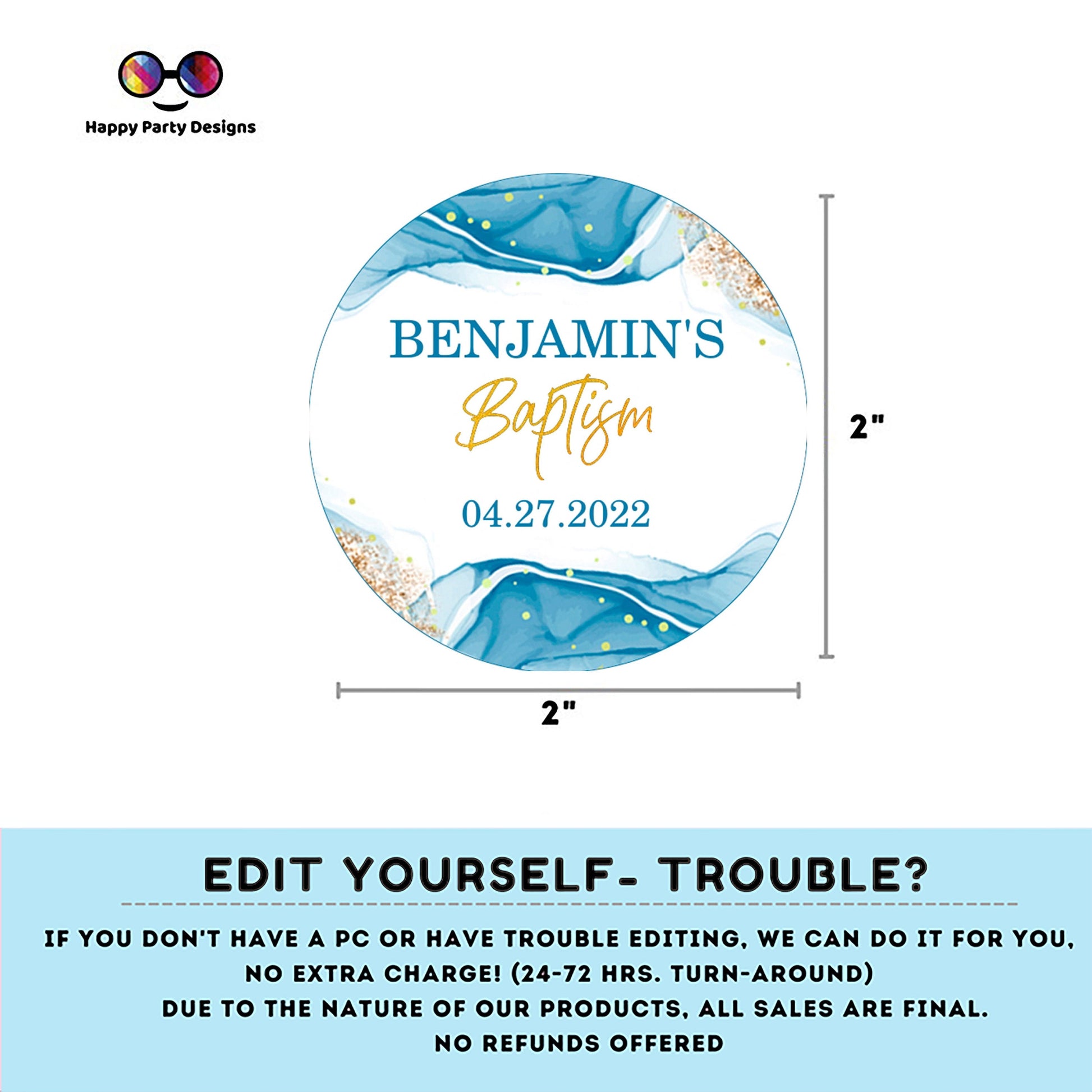 Editable Baptism Round Favor Tags | blue and gold favor Tags | Round Gift Tag | Thank You tag | blue Baptism Pink | Christening Favor Tags