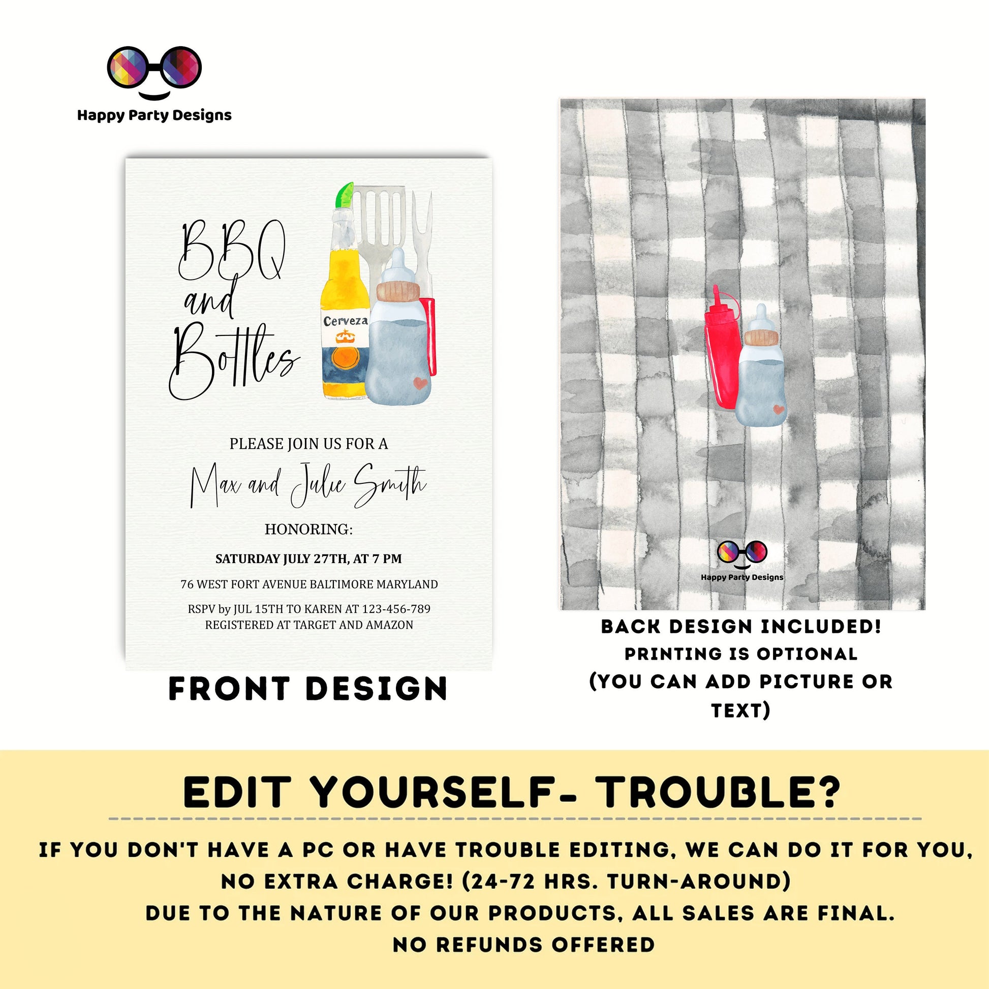 BBQ and Bottles Couples Shower Invitation, Instant Download, Editable, Template, Coed Baby Shower Invitation, Summer Coed Shower, DIGITAL EDITABLE Electronic Smartphone Invite, Edit, Text Now or Email!
