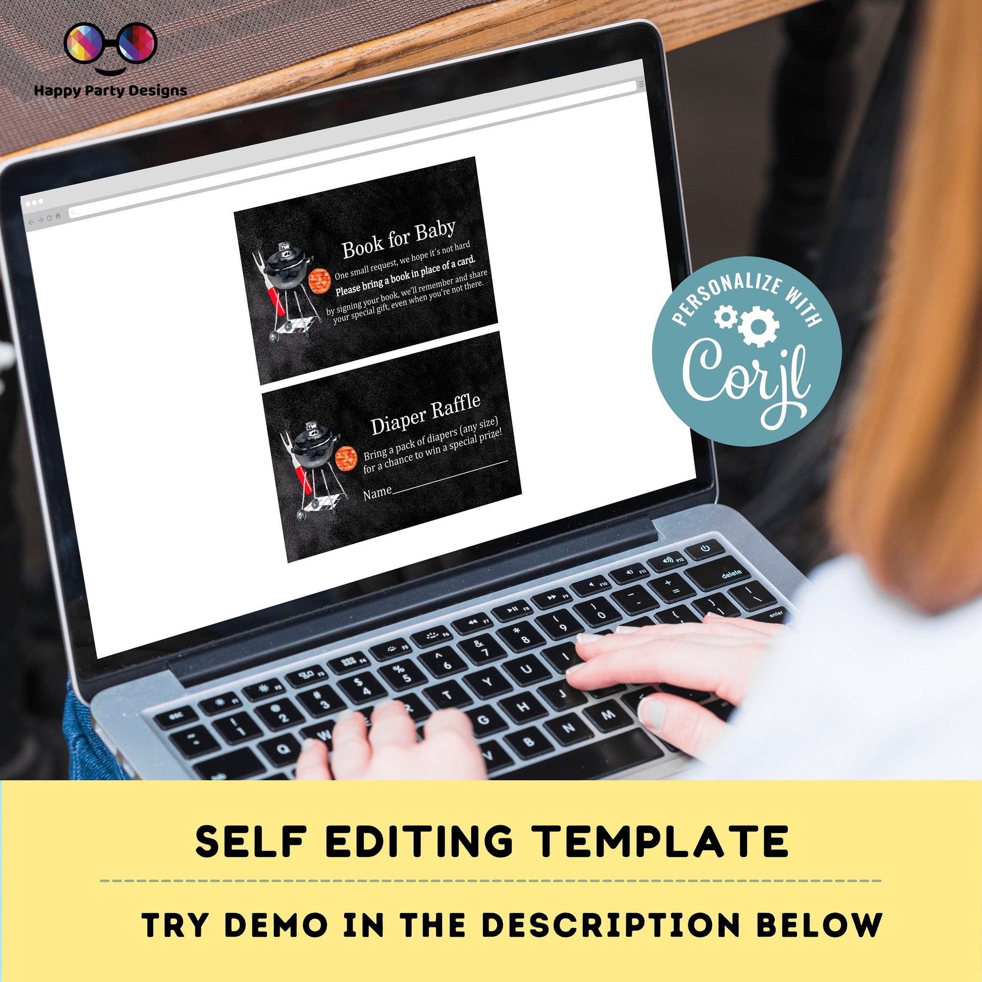 BBQ Baby Shower Invite Template, Barbecue Baby Sprinkle Invitation Diaper Raffle & Books for Baby with Digital Download.