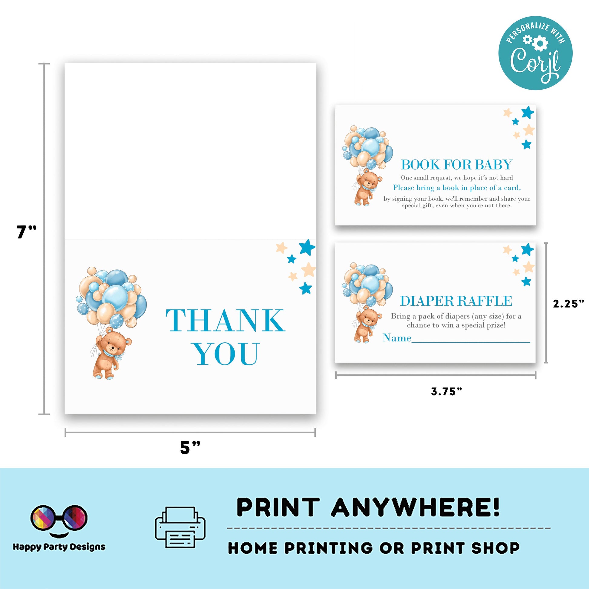 Bearly Wait Baby Shower Invitation Boy Blue Bear Balloons Baby shower invitation PDF Printable Invite We can bearly wait Boy baby shower bundle. books for baby. diaper raffle, thank you tag.