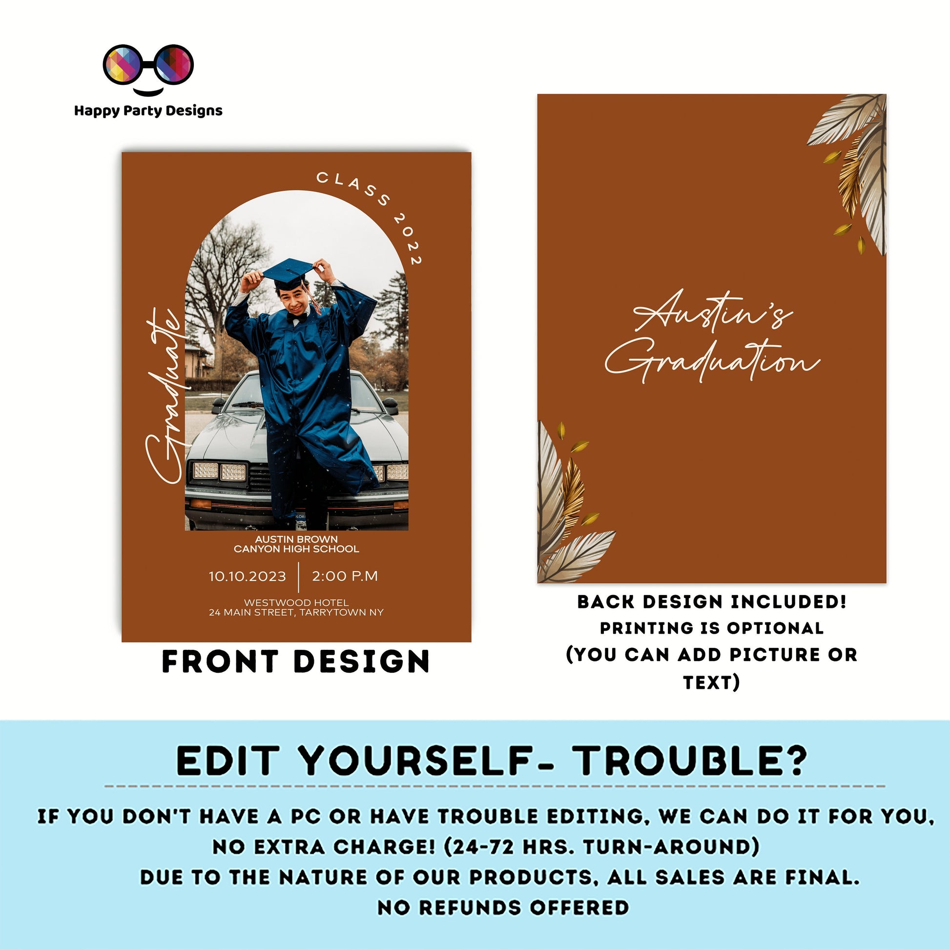 - Back design included (5" x 7") - add additional text, photos, & more!