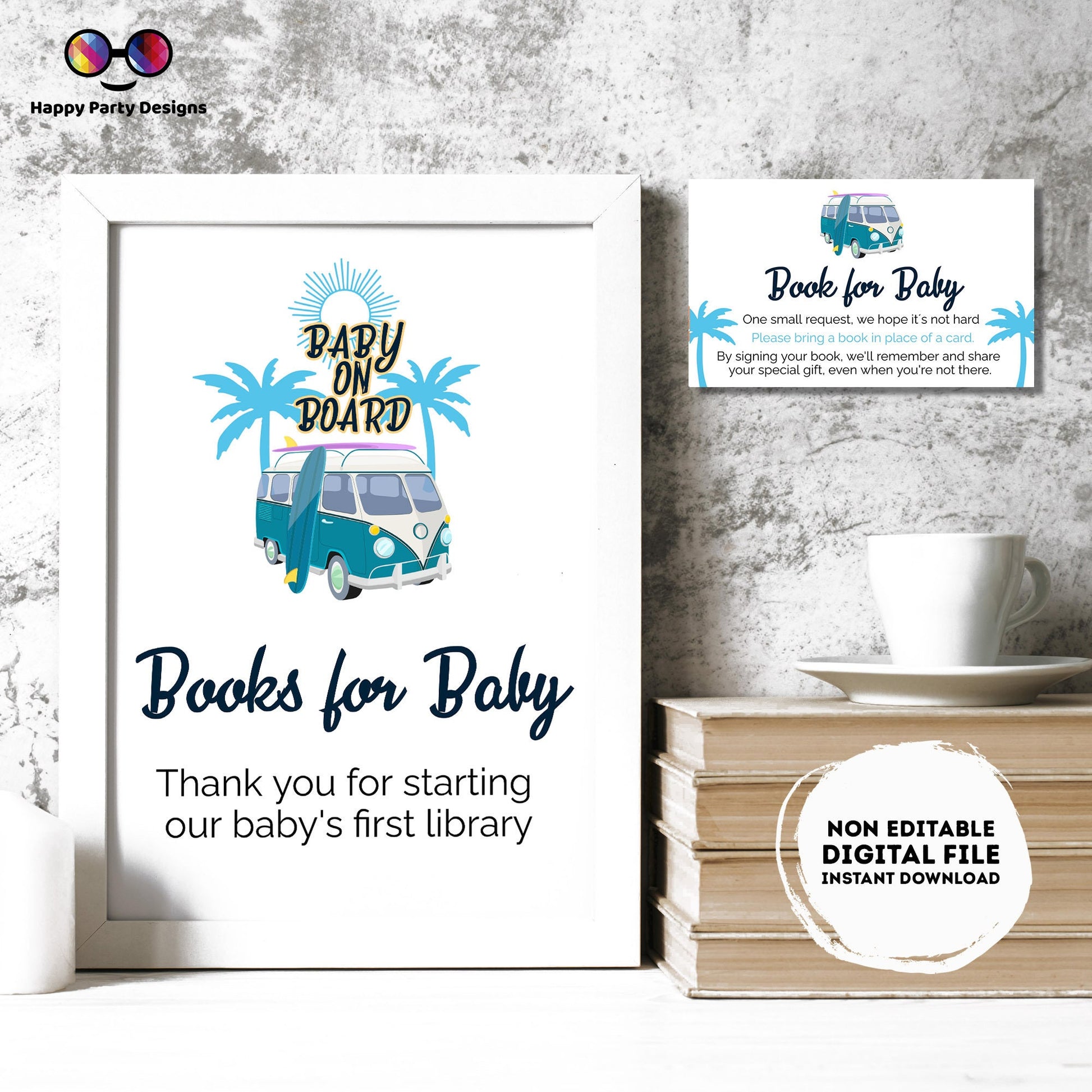 Beach Theme Book Request, EDITABLE Surfing Book Request Card, Summer Baby Shower Inserts, INSTANT DOWNLOAD. books Sign - Surf Baby Shower Decorations - Beach Theme Baby Shower - Baby on Board Shower Signage - Vintage Surf Party Signs.