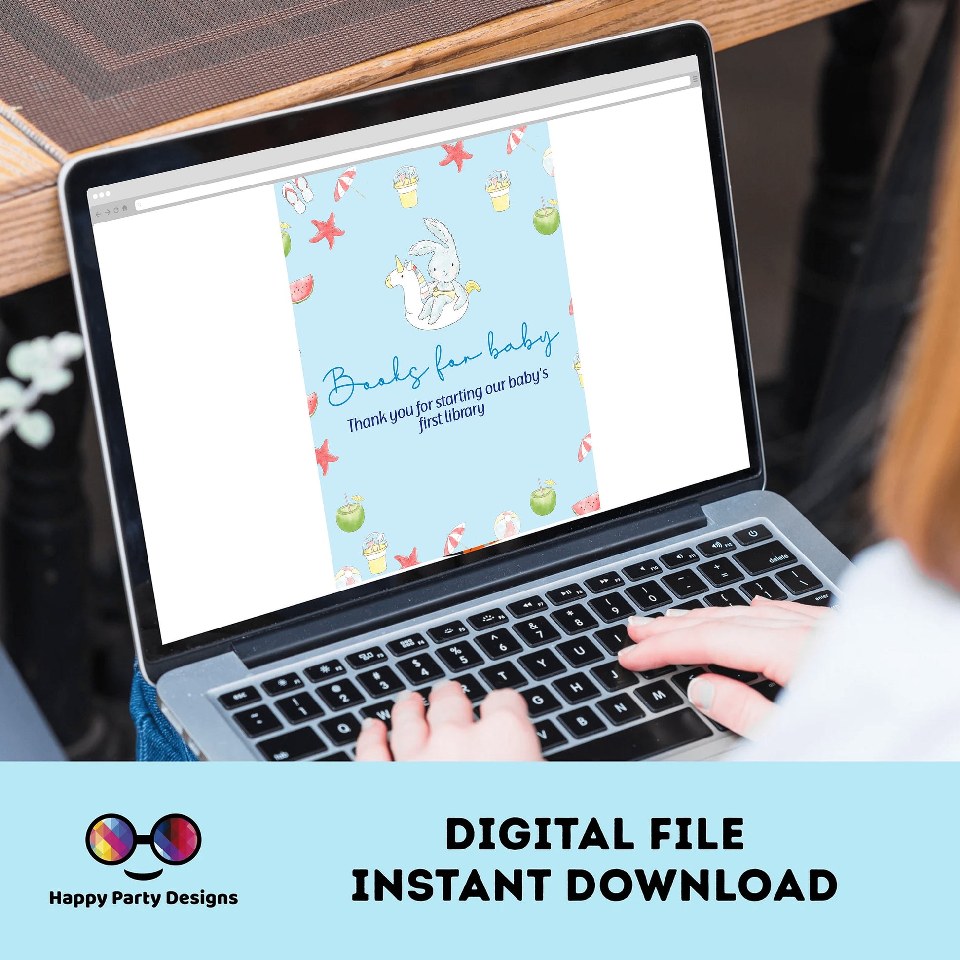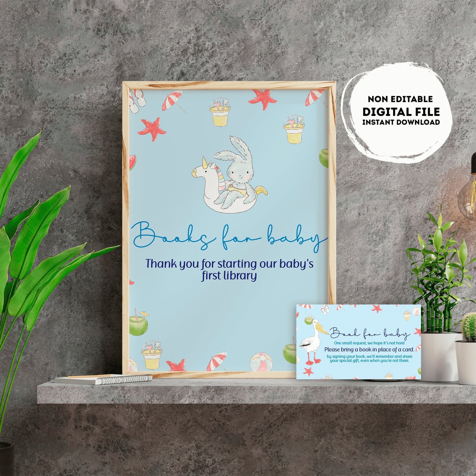 Books for baby Sign | Instant download | book for baby card | book request | baby Boy | baby shower Sign | pool | summer baby shower #B1
