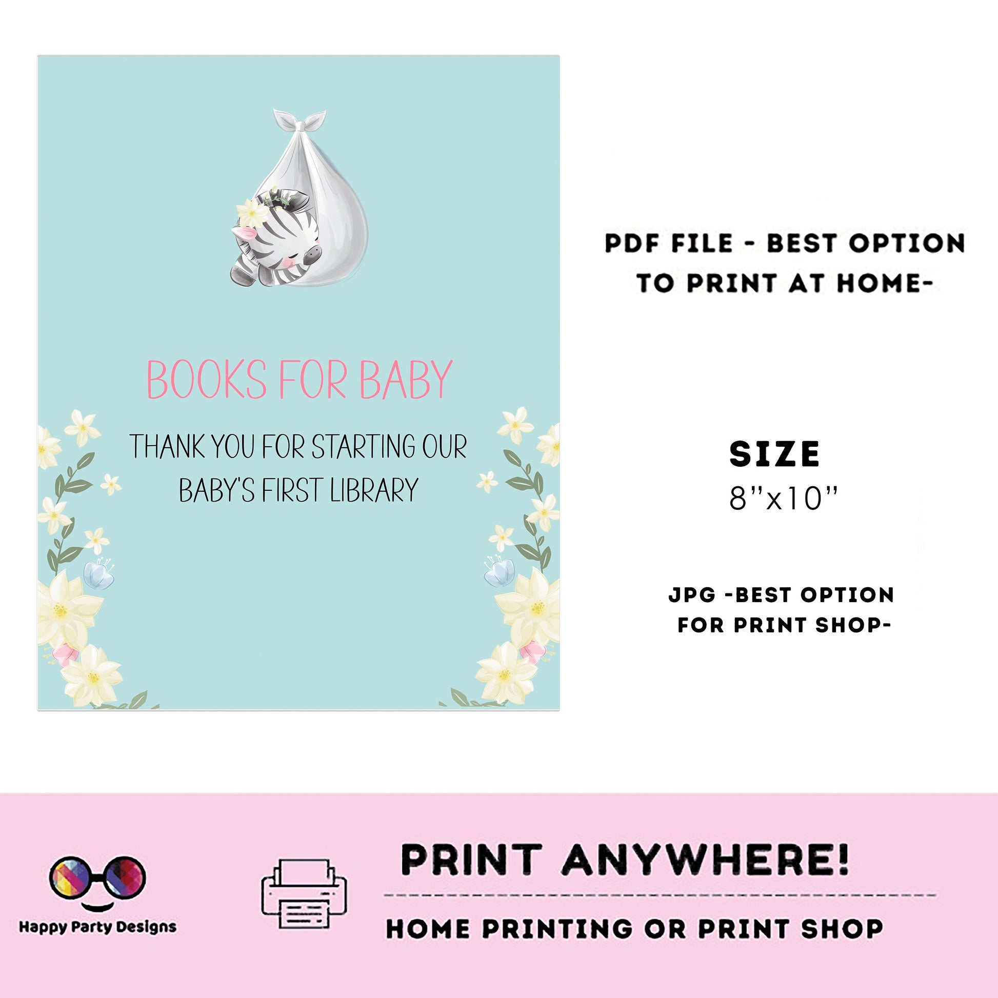 Books for Baby Sign and Books for Baby Invitation Insert, zebra Baby Shower Sign and Insert, safari Baby Shower, Instant Download.