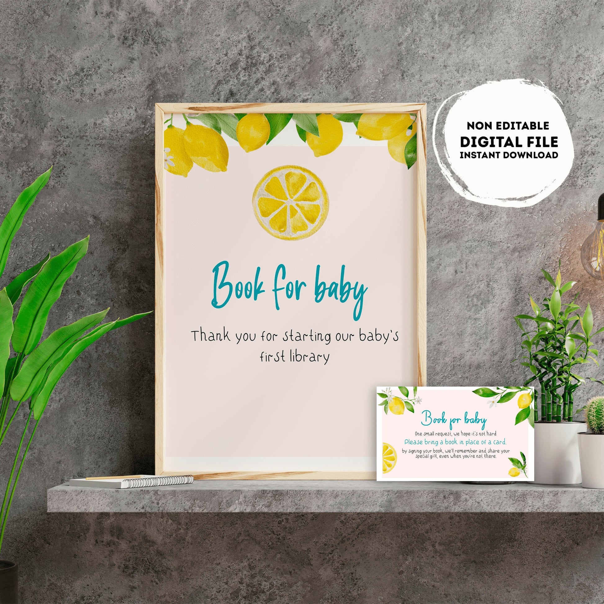 Books for baby Sign | Instant download | book for baby card | book request | baby girl | baby shower Sign | summer | lemon baby shower #B8