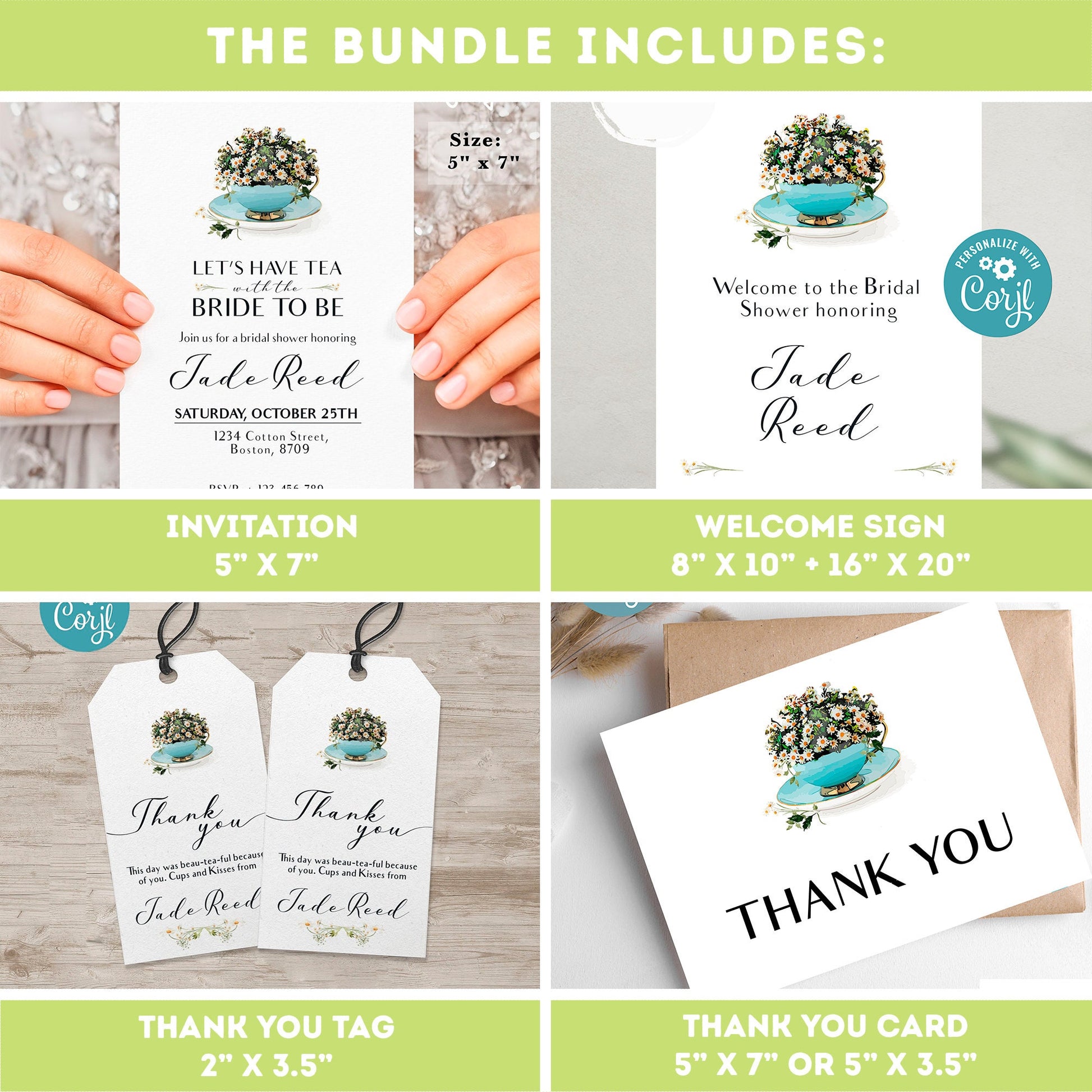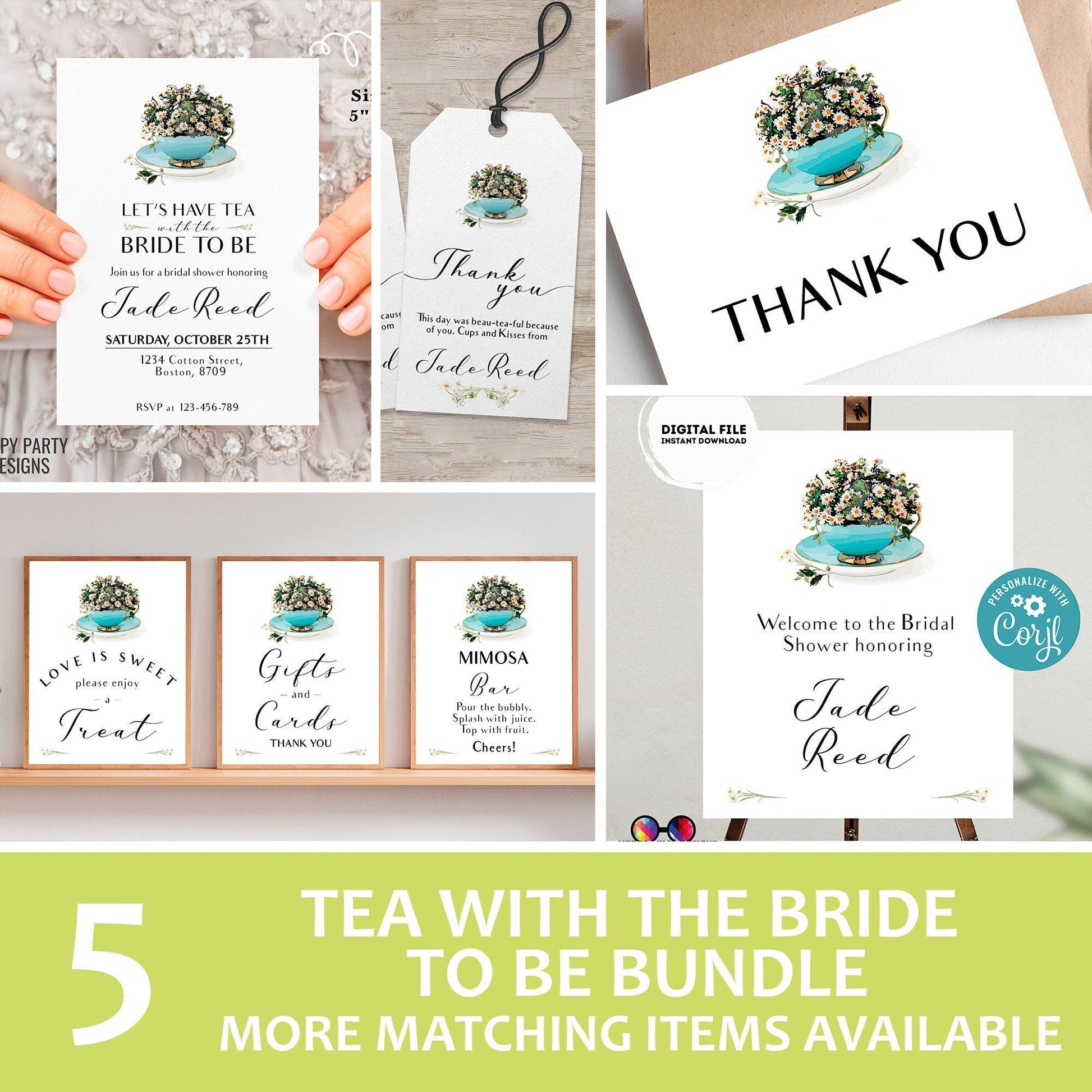Bridal Shower Tea Party Invitation Template | Bridal bundle Tea Shower Invite | Bridal Brunch | Bridal shower invitation template #W2