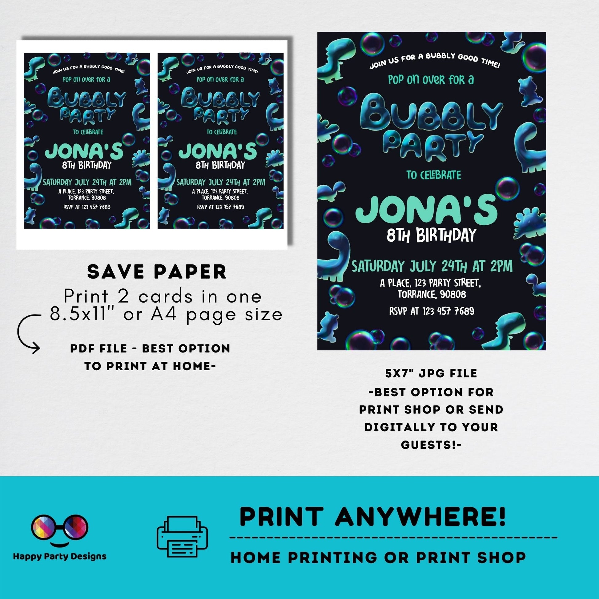 Bubbles birthday invitation | Bubble invitation | Birthday boy | dinosaur bubbles party | blowing bubbles invitation | dino bubble #K126
