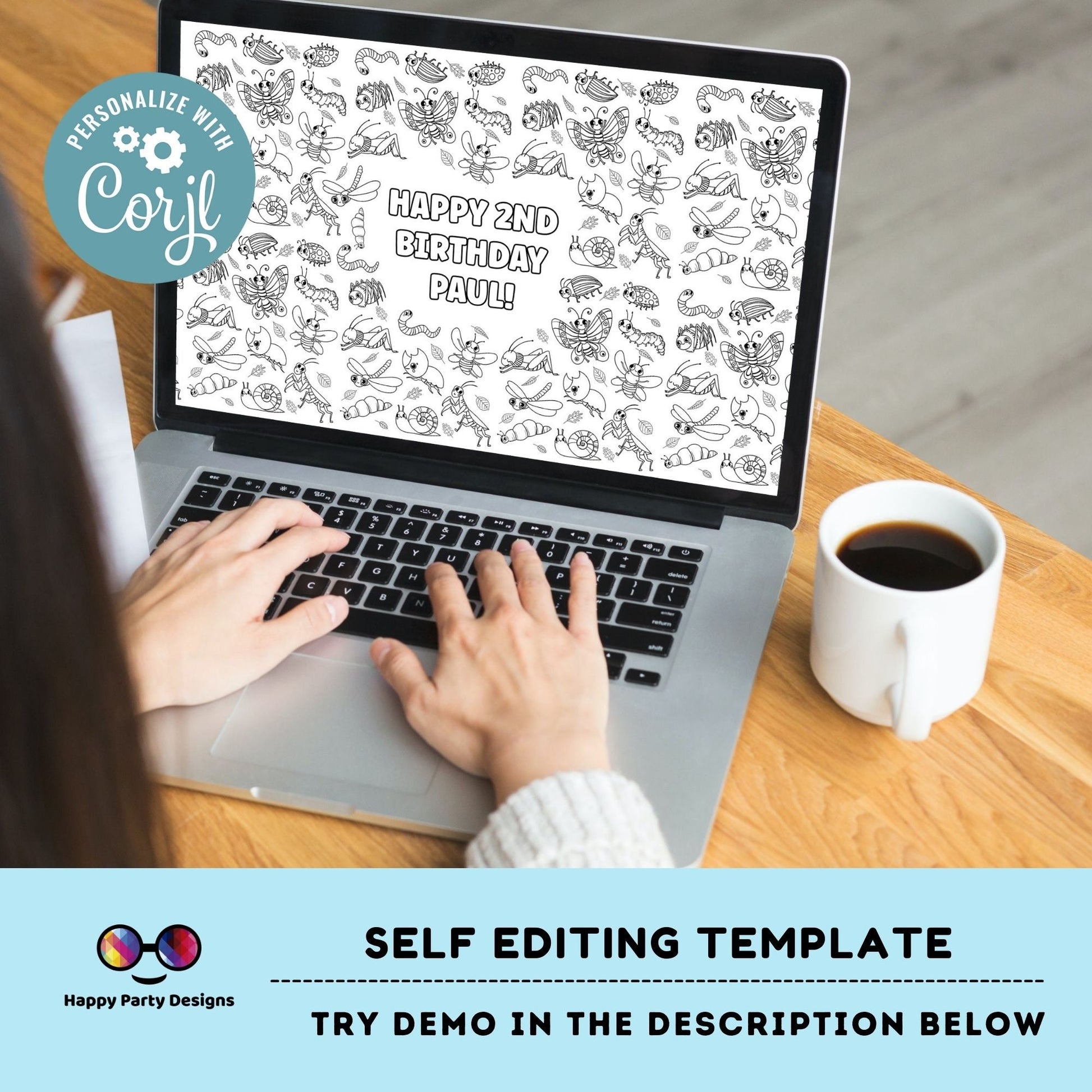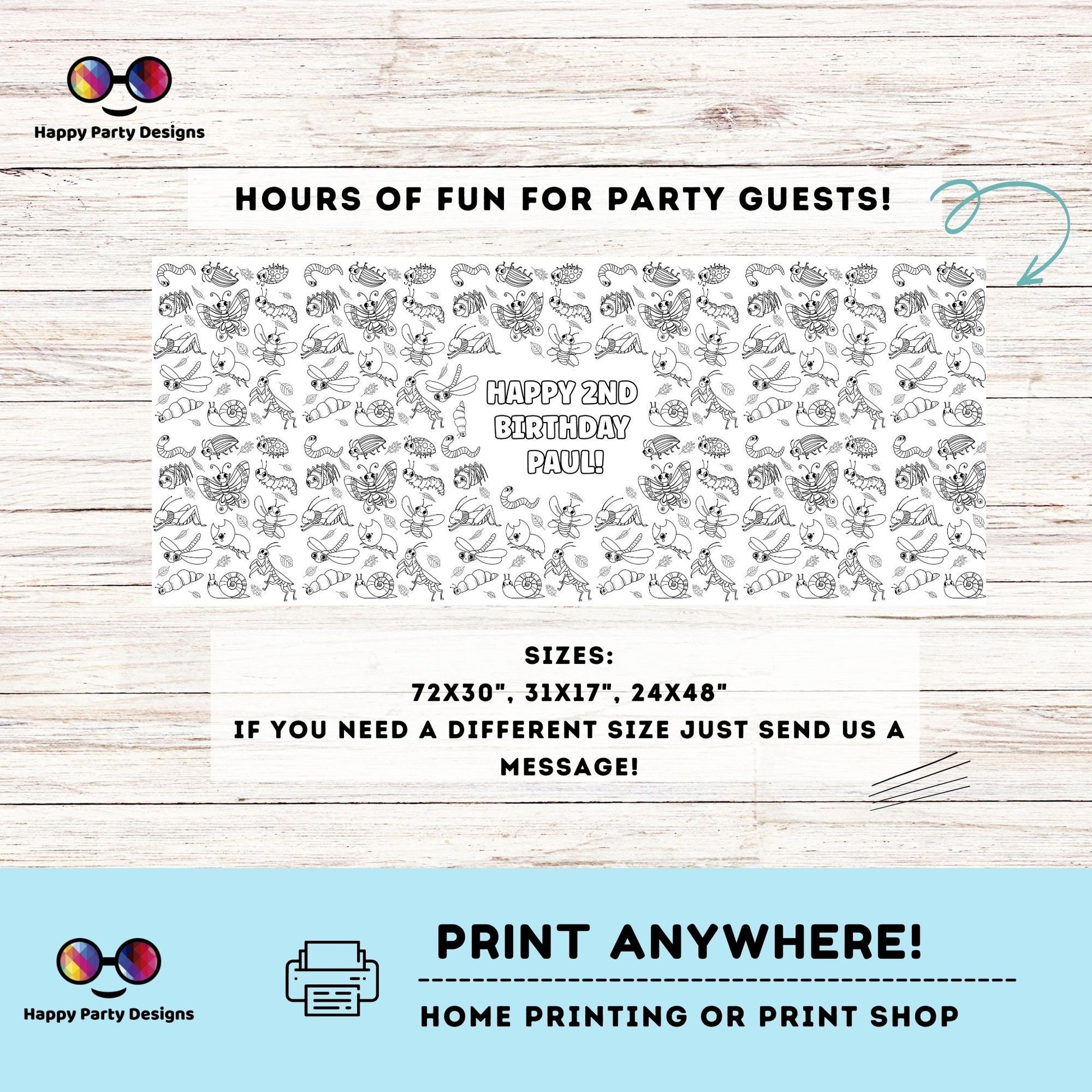Bugs XL Table Runner | Editable Bugs coloring page | Placemat coloring page | Any Age | Bugs birthday Bugs and Insects Party Activity #K49
