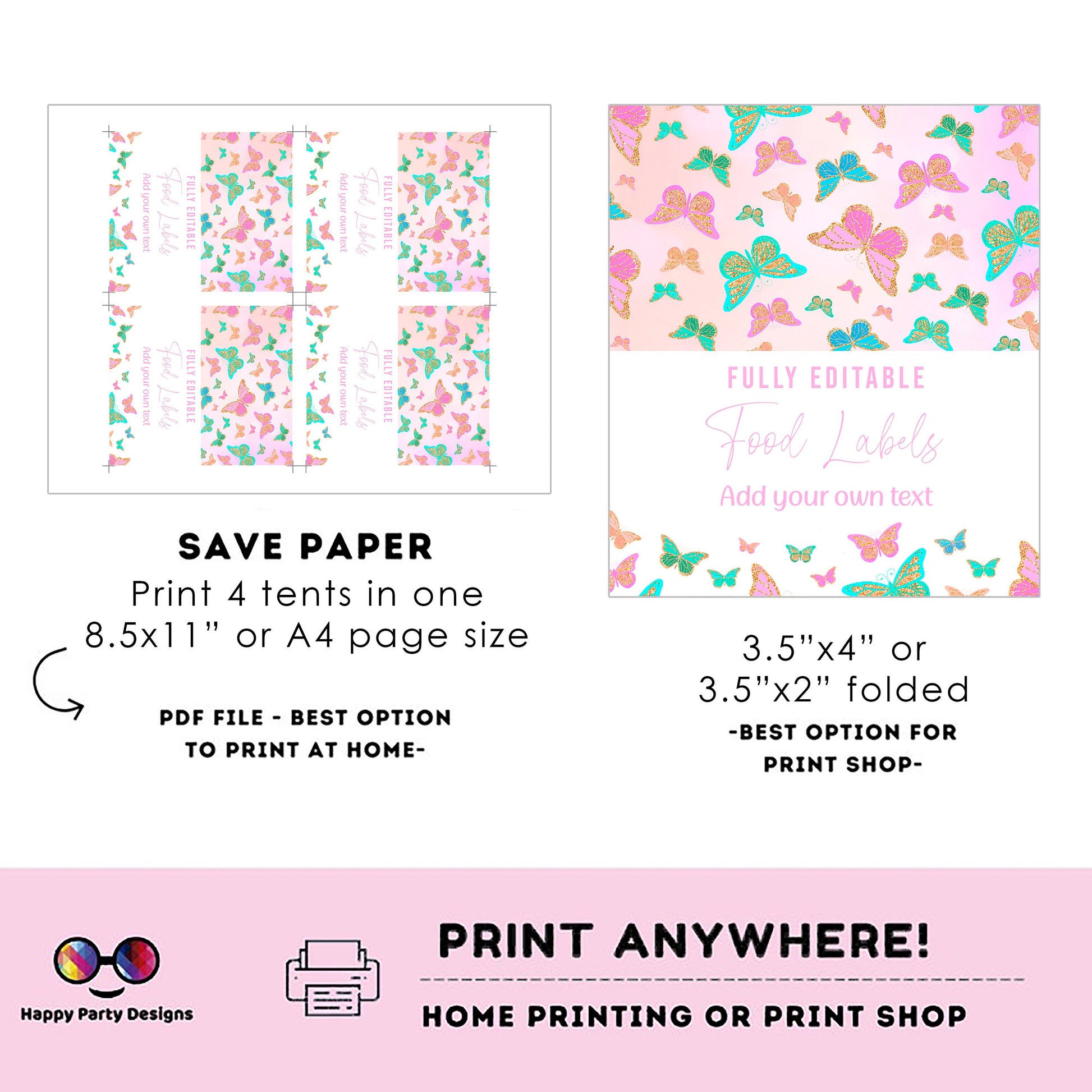 Butterflies Birthday food tent | Butterfly party | buffet labels | Spring birthday party | food label template | First birthday #0002