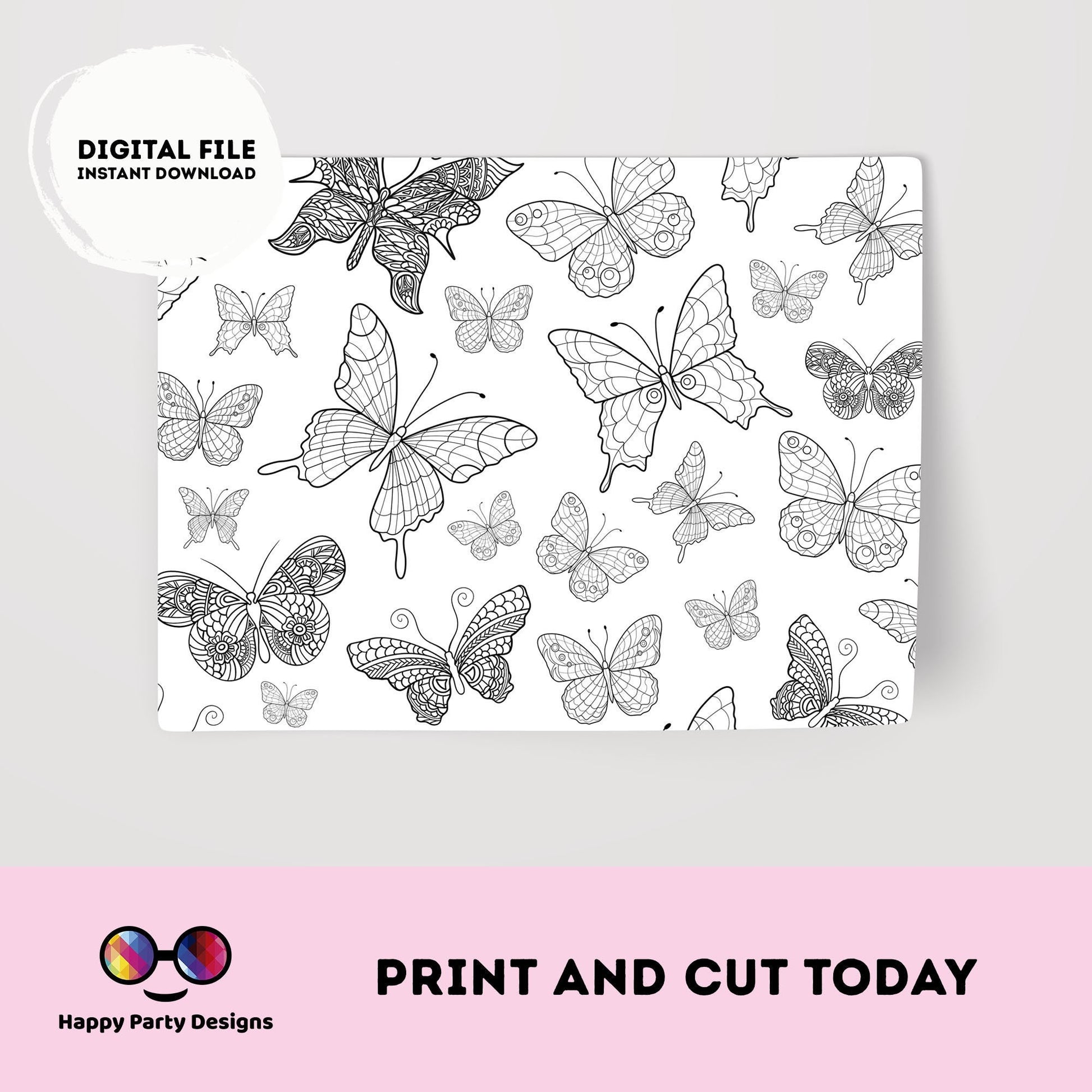 Butterfly coloring Placemat | Instant download | Spring Birthday | Any Age | Spring party | Butterfly Party decor | Butterfly birthday #0002