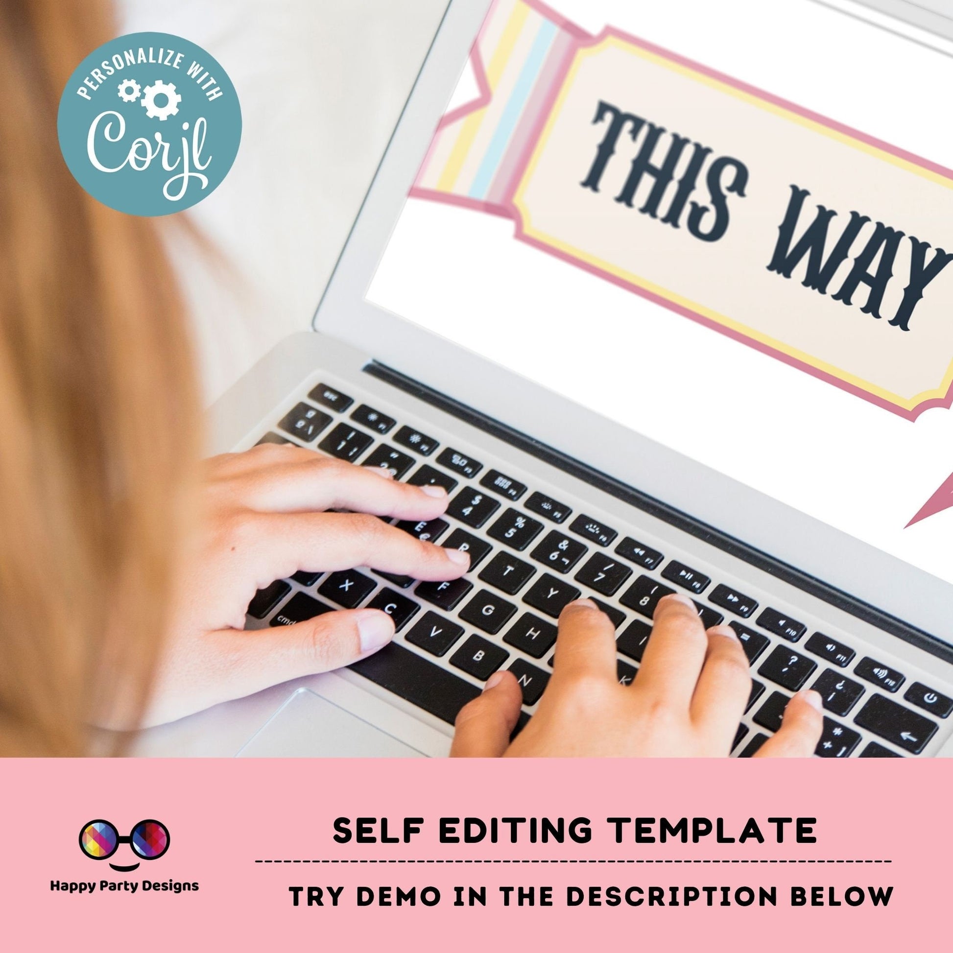 Carnival Circus Arrow Sign, Circus Birthday Arrow Sign | Pastel Rainbow | Editable Instant Download | Edit Online Instant download #K211