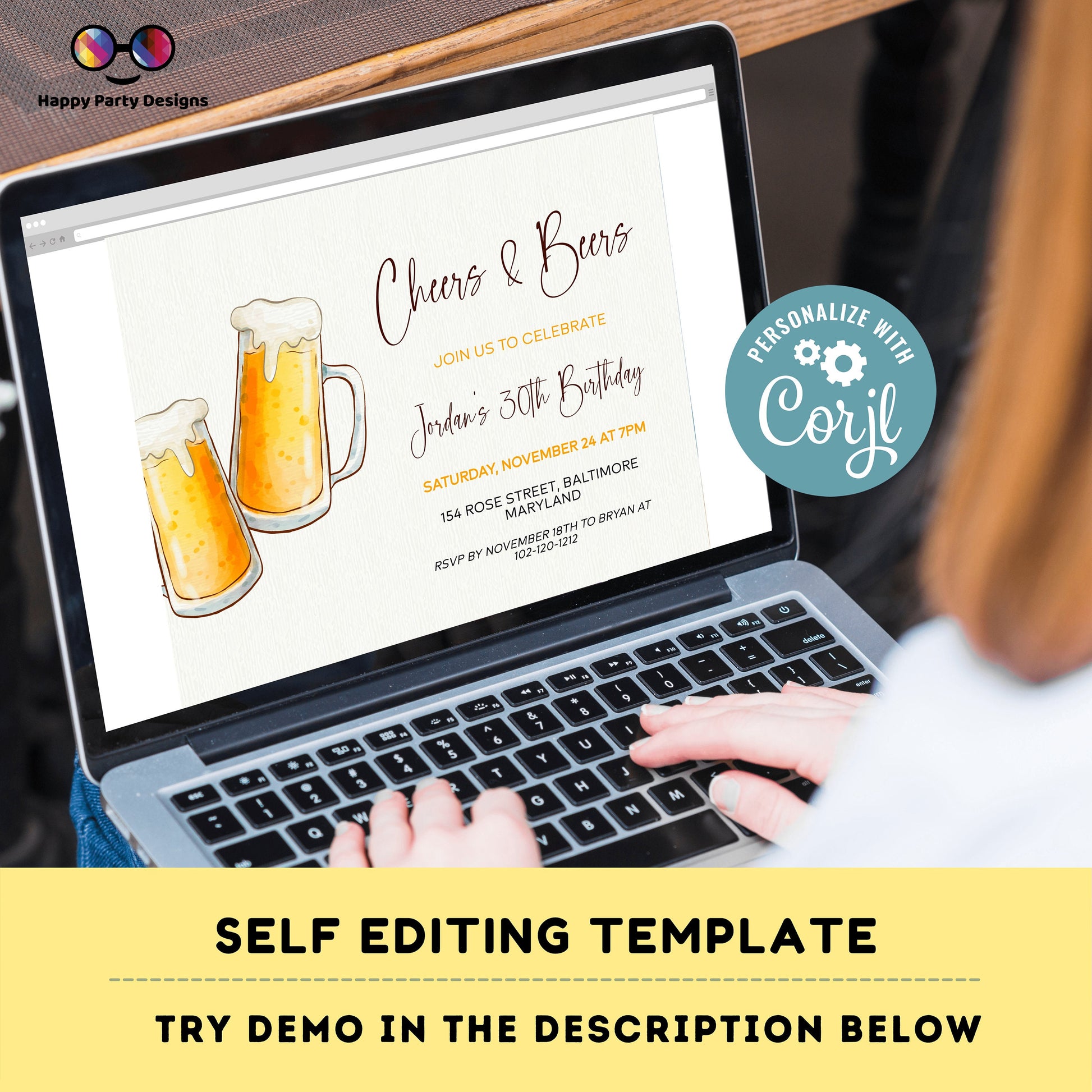 Cheers and Beers Surprise Birthday, TEXT Invitation, 30th, Any Age, DIGITAL EDITABLE Electronic Smartphone Invite, Edit, Text Now or Email!