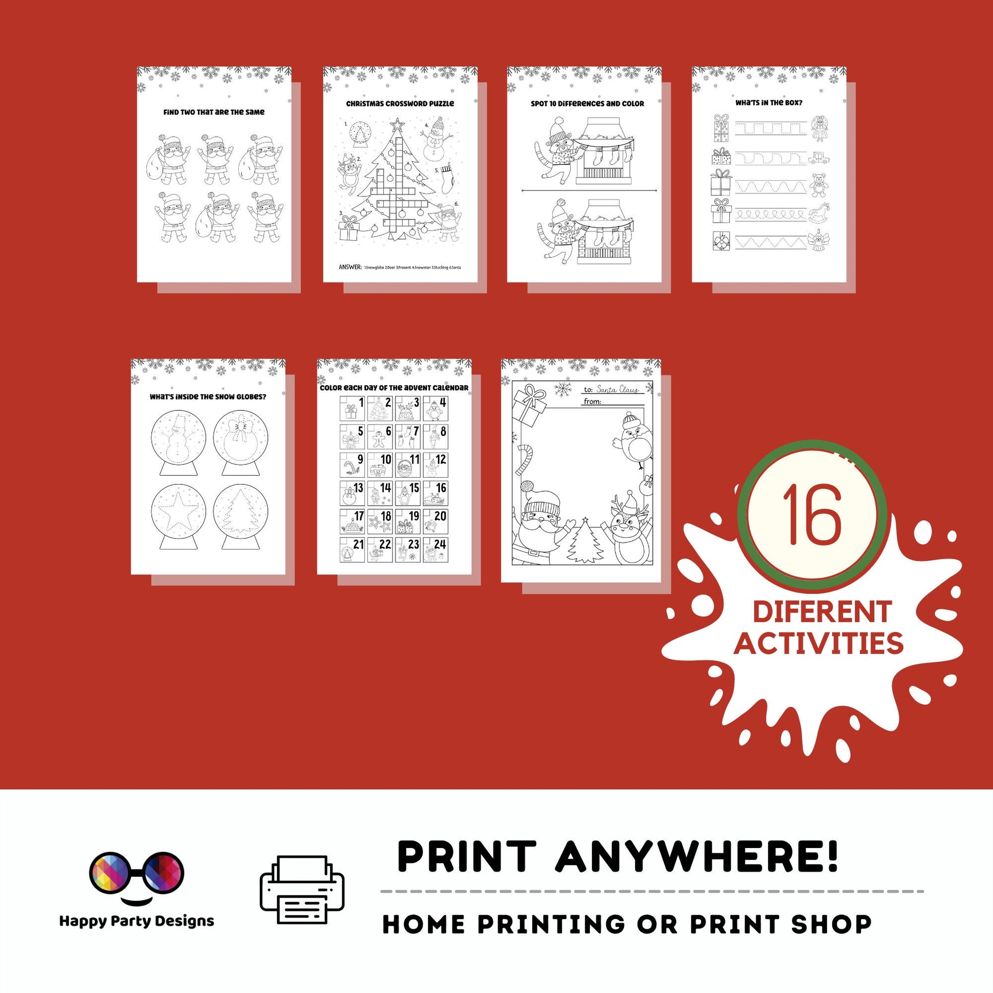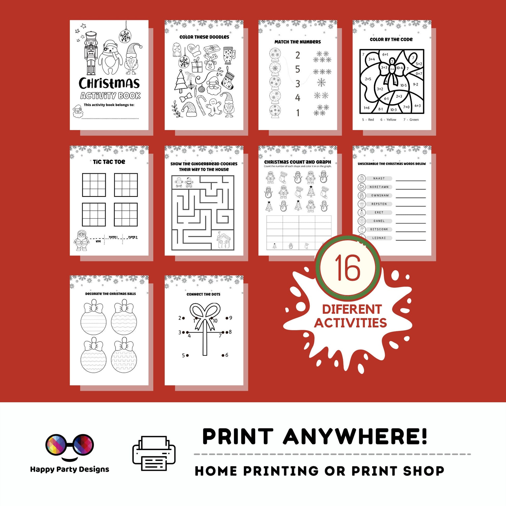 Instant Download Christmas Kids Activity Book and Coloring Pages.