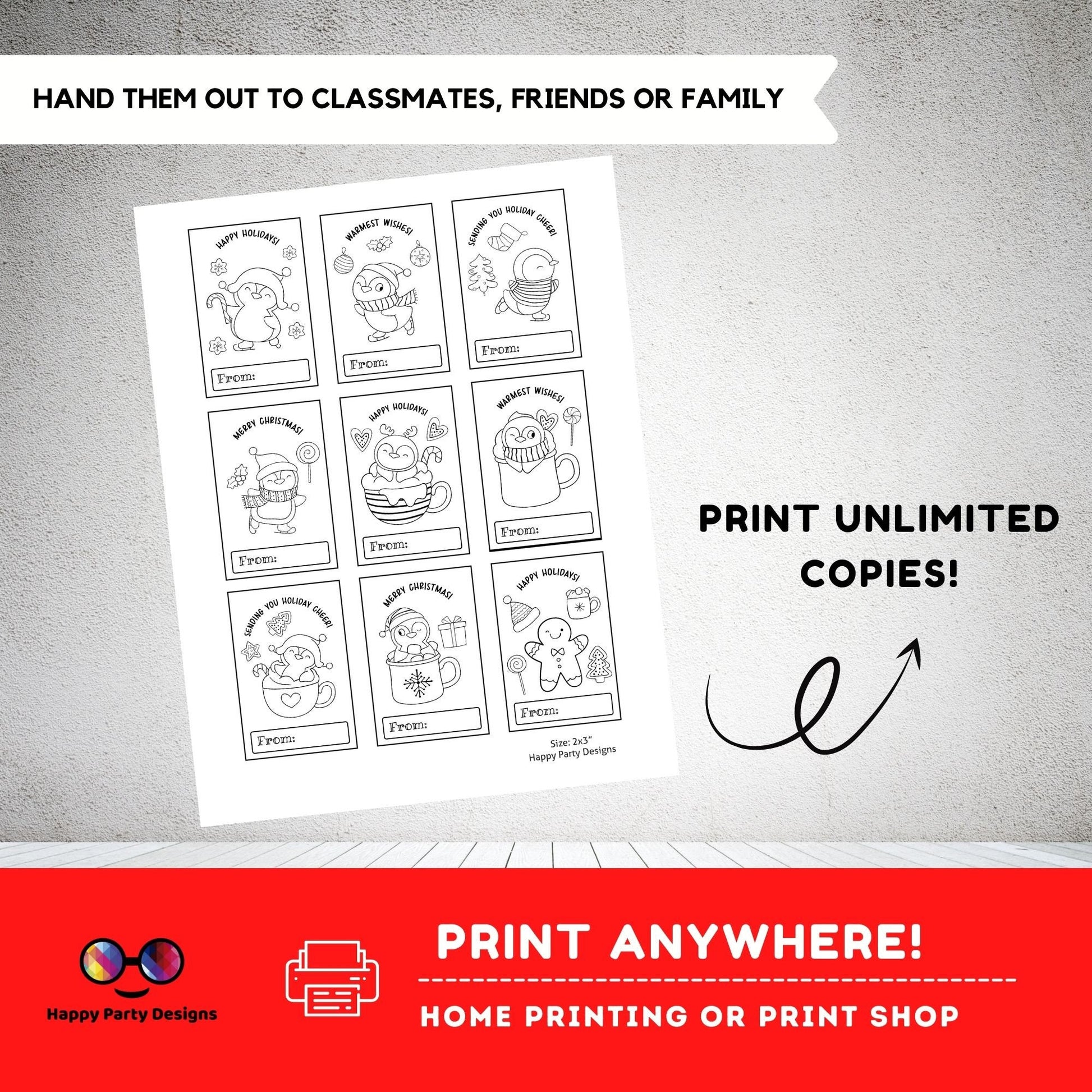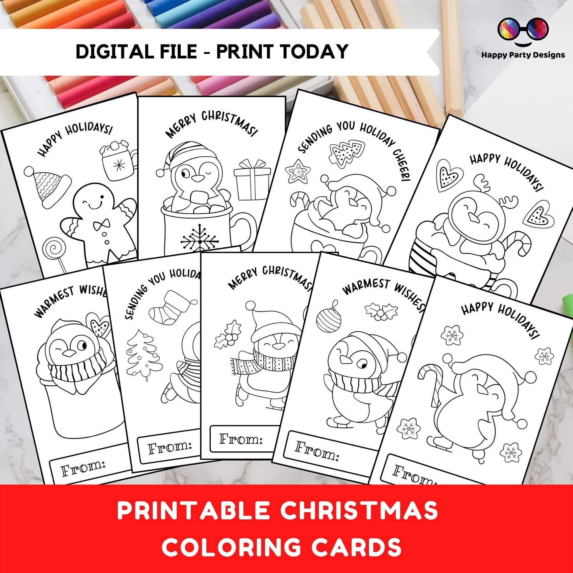 Printable Christmas Coloring Cards, Kids Christmas Coloring Activity, Printable Christmas tags, Digital Download | activity for kids | coloring pages | activity pages | Christmas | Christmas pages | Christmas digital | Christmas themed