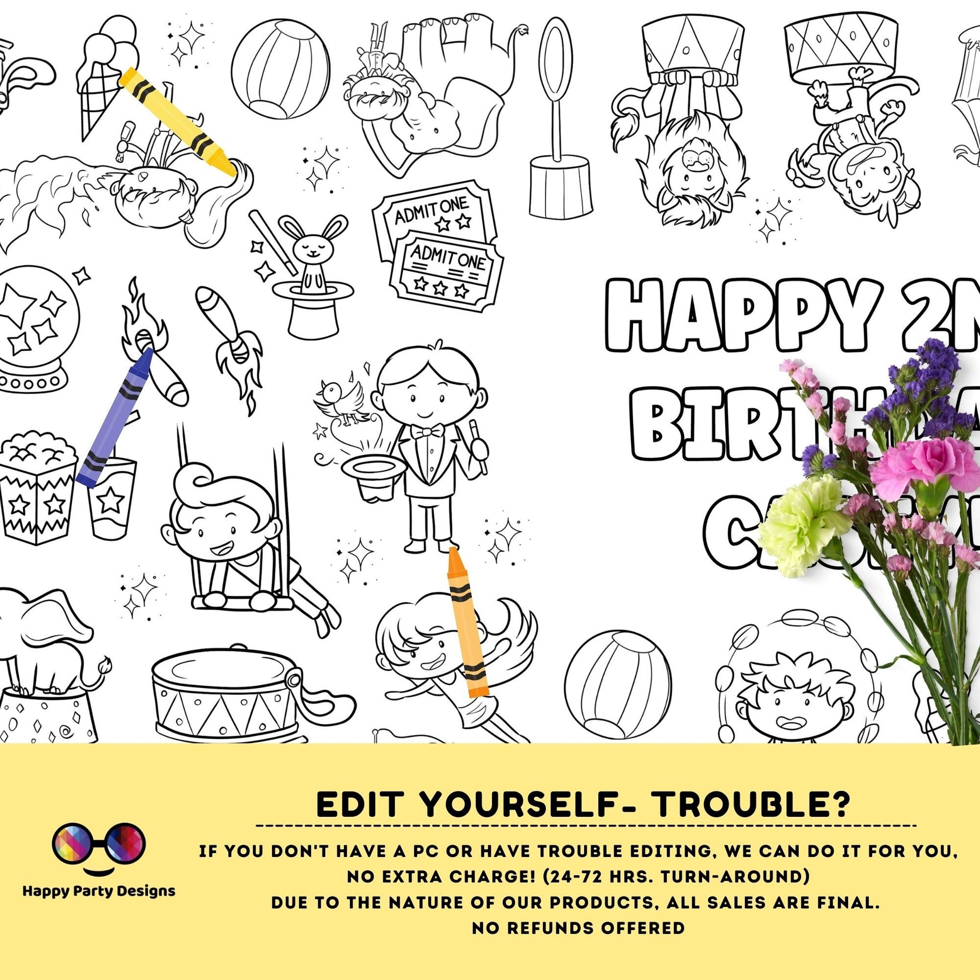 Circus XL Table Runner | Editable circus coloring page | Placemat coloring page | Circus birthday party | Circus Party Activity #K119
