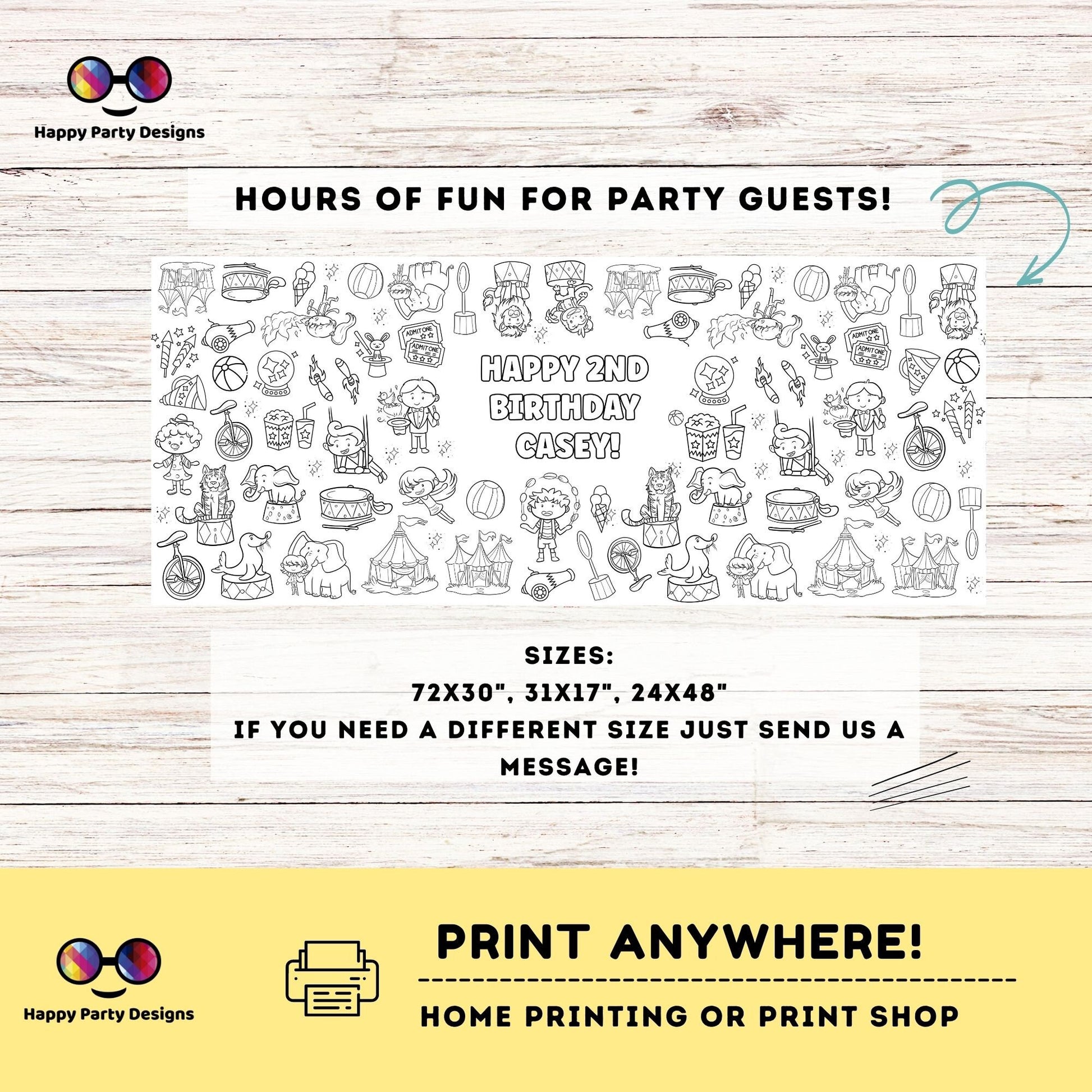 Printable giant poster to color, that you can use on the wall or as a table runner. A great activity for your party! The text is totally editable, so it's suitable for any age or occasion!