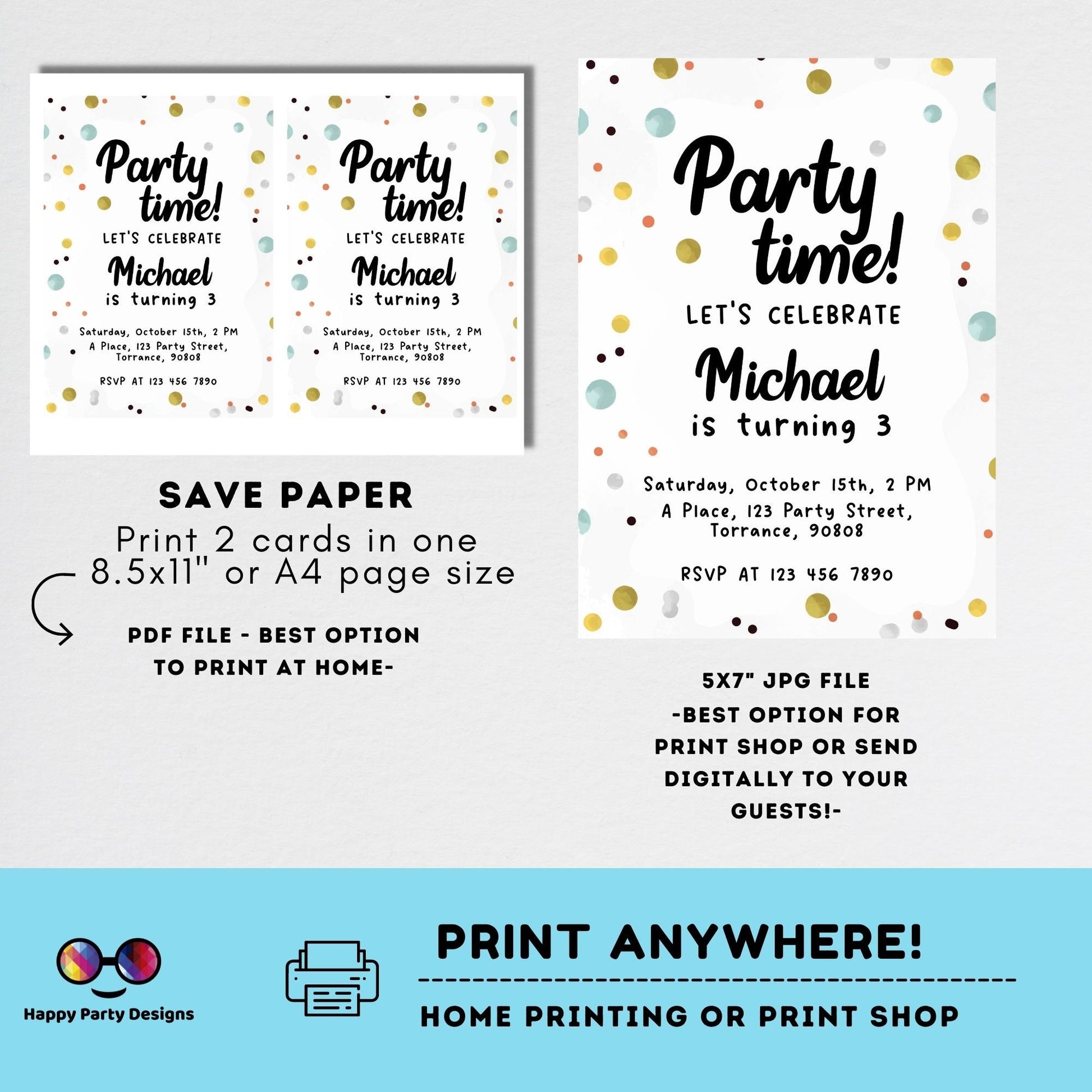 Confetti Party Invitation Template | Party Invite | Editable Template | Party Printable Invite | Birthday boy Confetti #K201