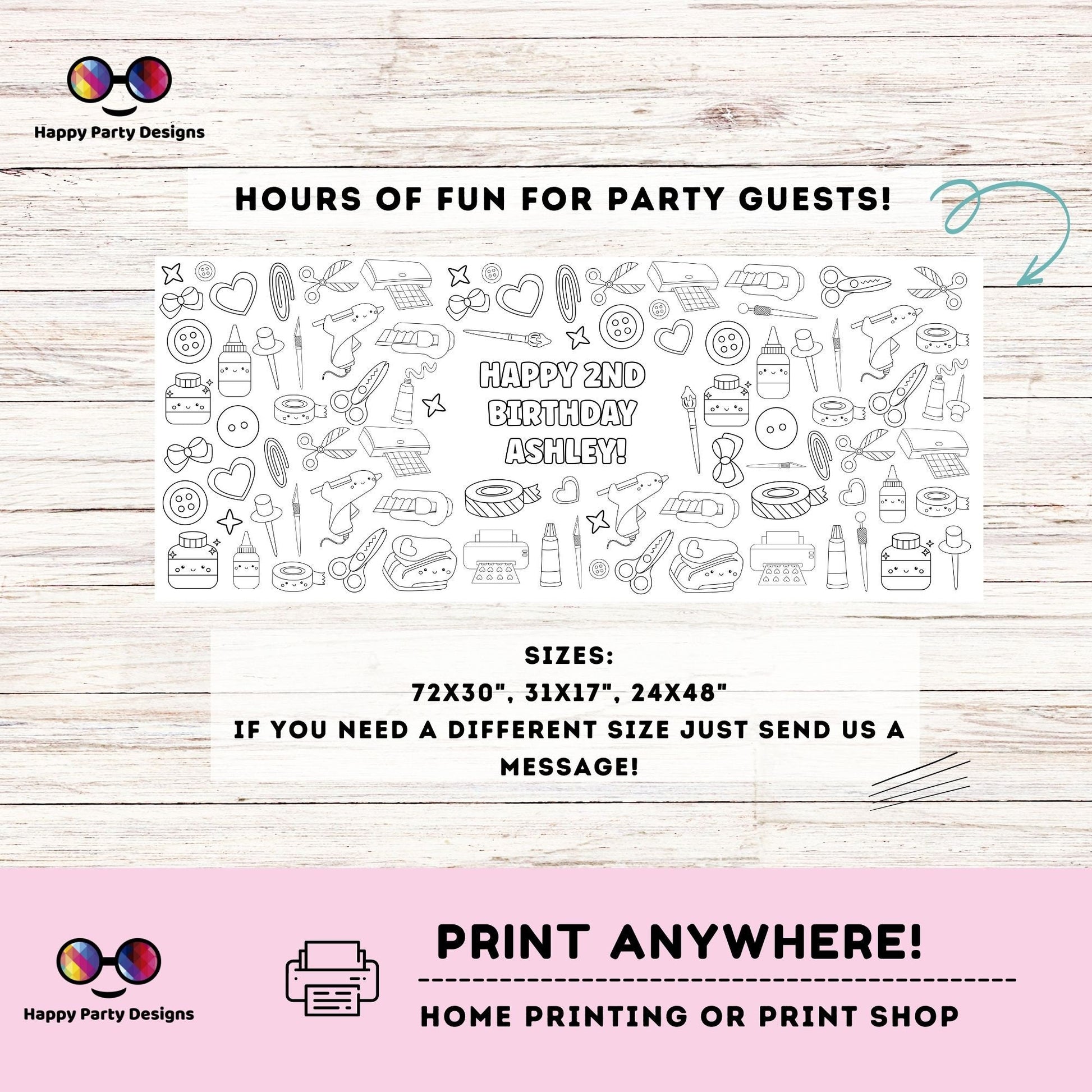 Crafts XL Coloring Table Runner | Editable Crafts Birthday coloring page | Placemat coloring page | Crafts birthday Party Activity #K162