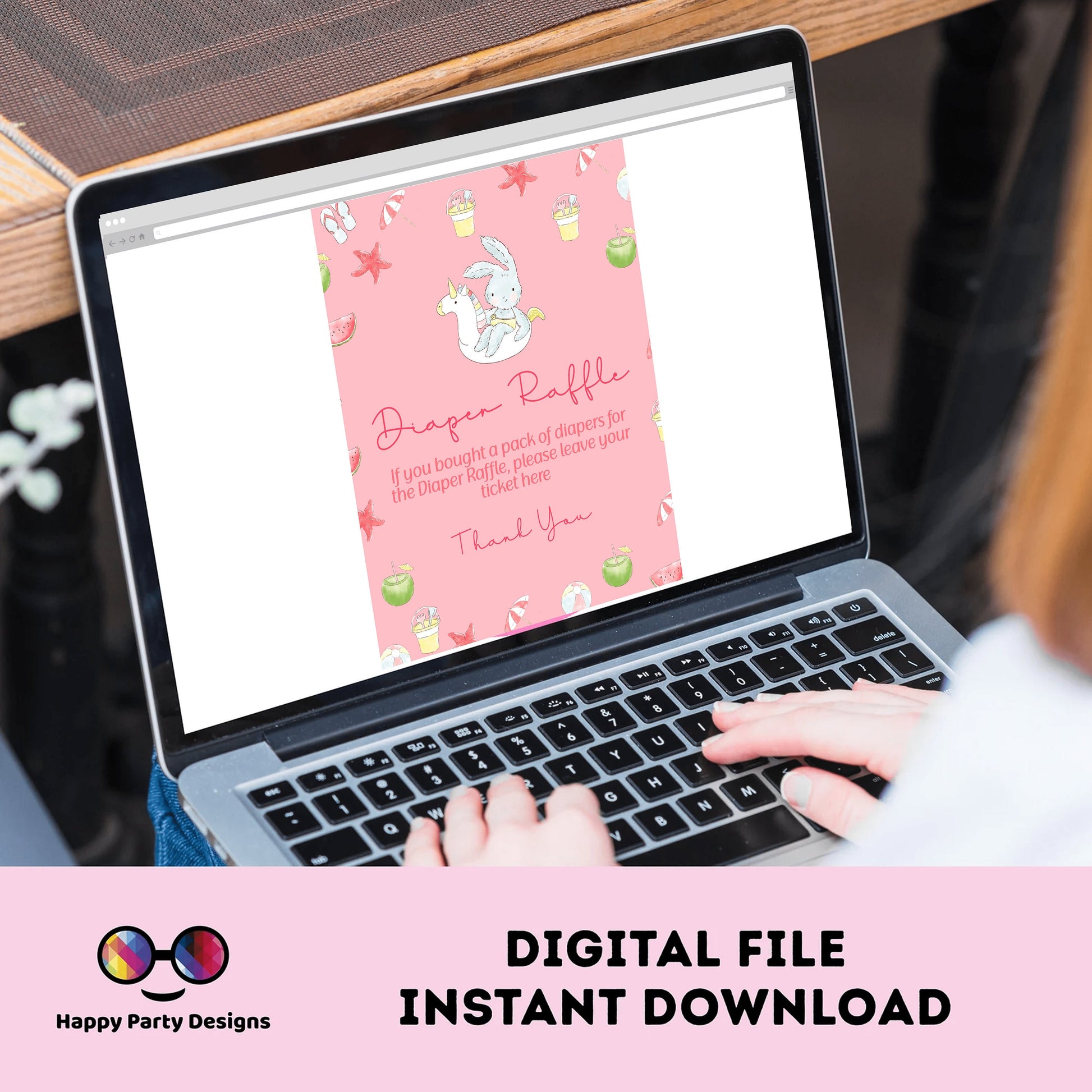 Diaper Raffle Sign and Diaper Raffle Invitation Insert, pool baby bash Baby Shower Sign and Insert, summer Baby Shower, Instant Download.