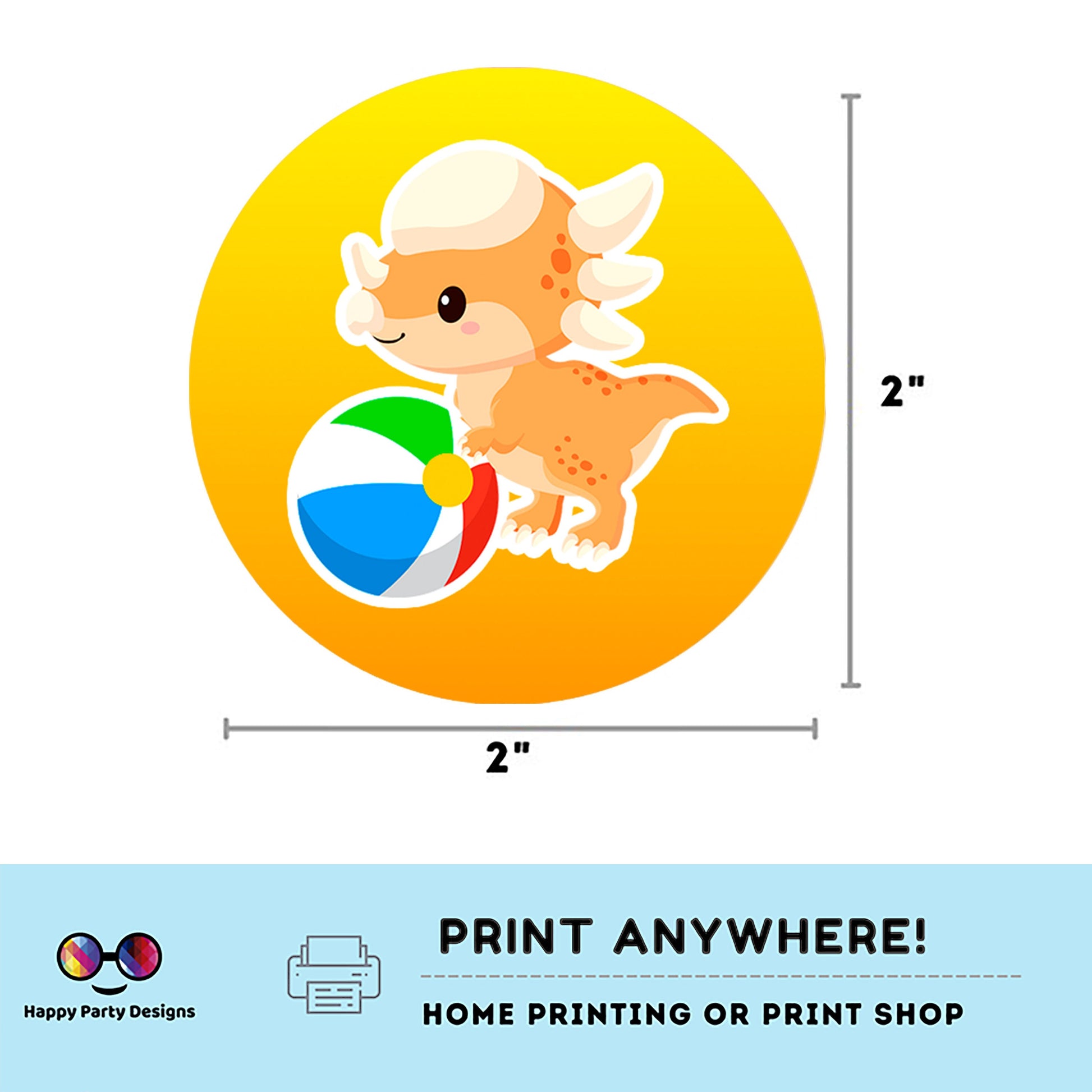 Dino Pool Party Round cupcake toppers | Dinosaur birthday | Dino Birthday Party | Dinosaur themed | Boy Birthday Party | stickers