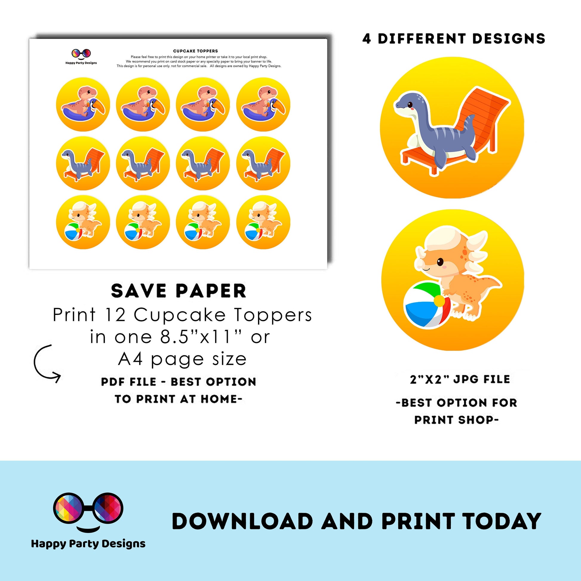 Dinosaur Pool Party Cupcake toppers | Instant Download Dinosaur Pool Party Cupcake toppers | Printable Template | Editable Dinosaur Pool Party themed Cupcake topper | Dinosaur Pool Party editable Cupcake toppers | Digital Invitation | Instant download stickers | Dinosaur Pool Party Stickers