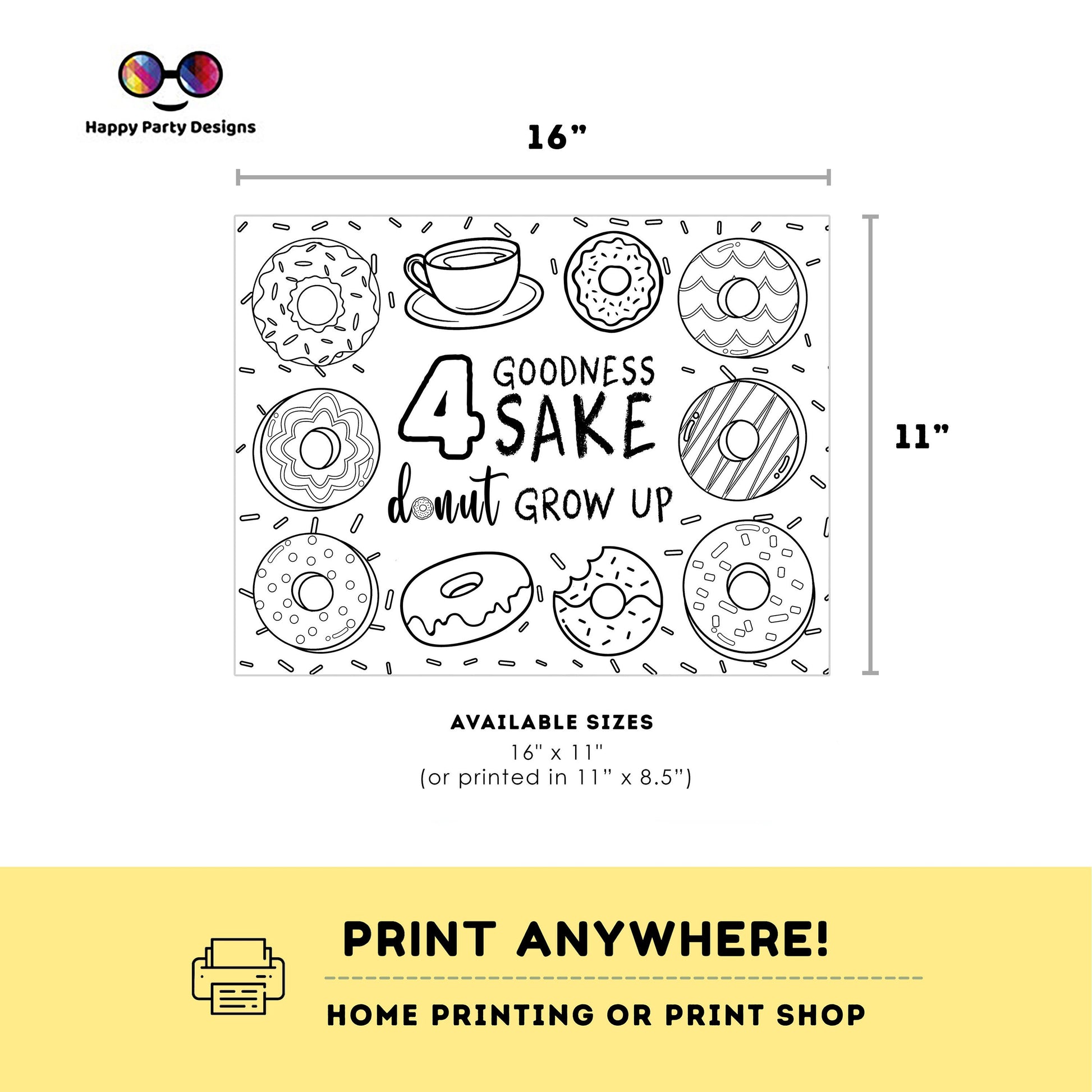 Donuts coloring page | Instant download | Donuts coloring page | Any Age | Cute Donut party | Donut Miss the Party - Party Activity #K123