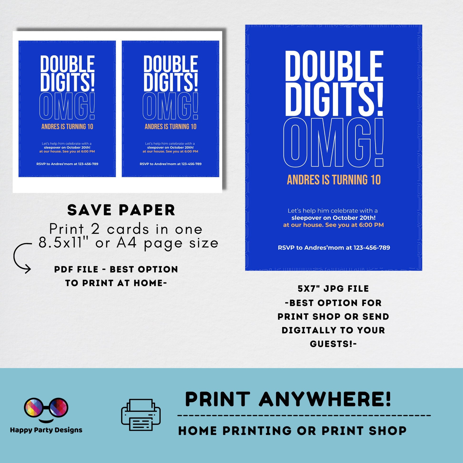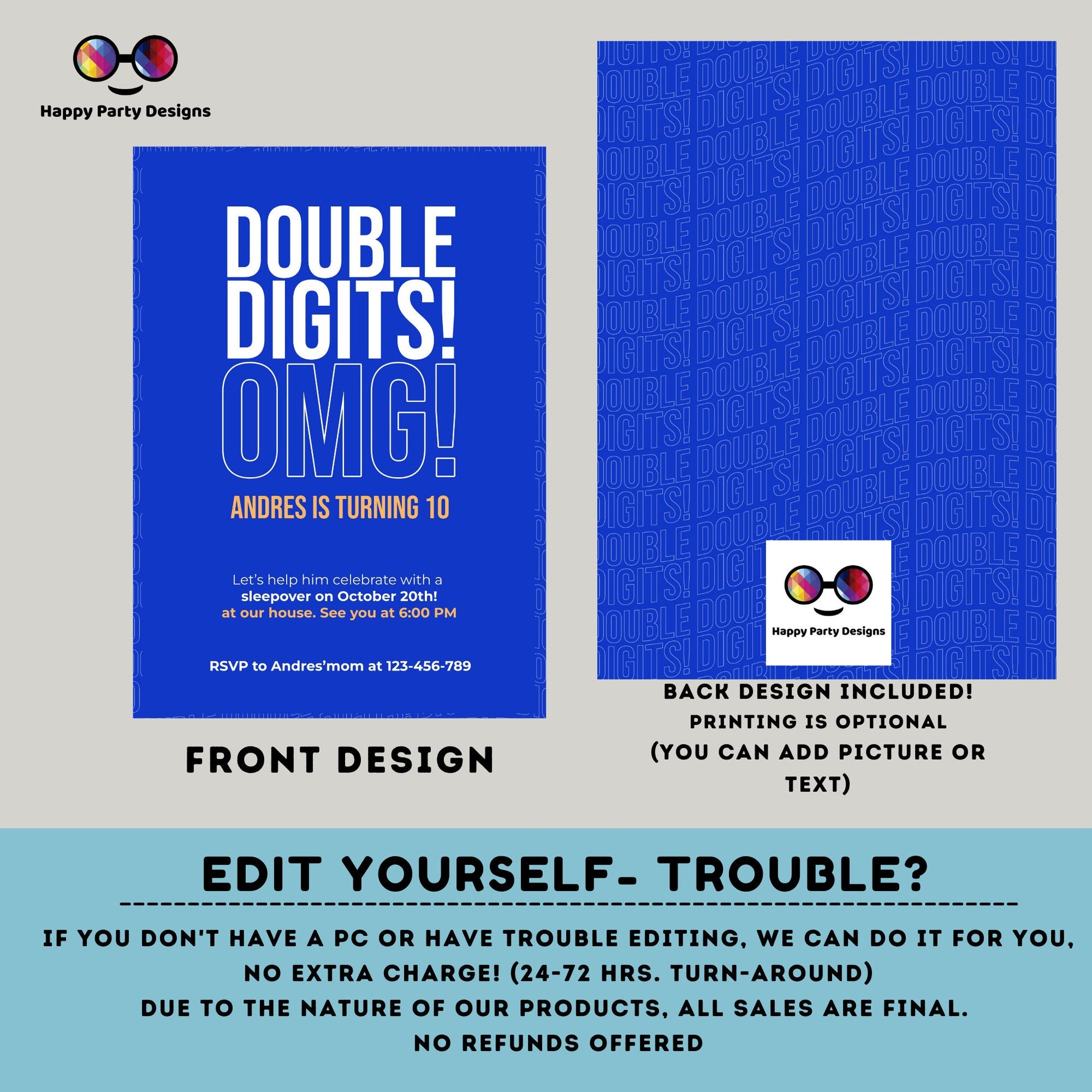 Editable 10th Birthday Invitation | Boy 10th Birthday Party | tween Birthday Invite | Editable fun birthday Invite | double digits #K282