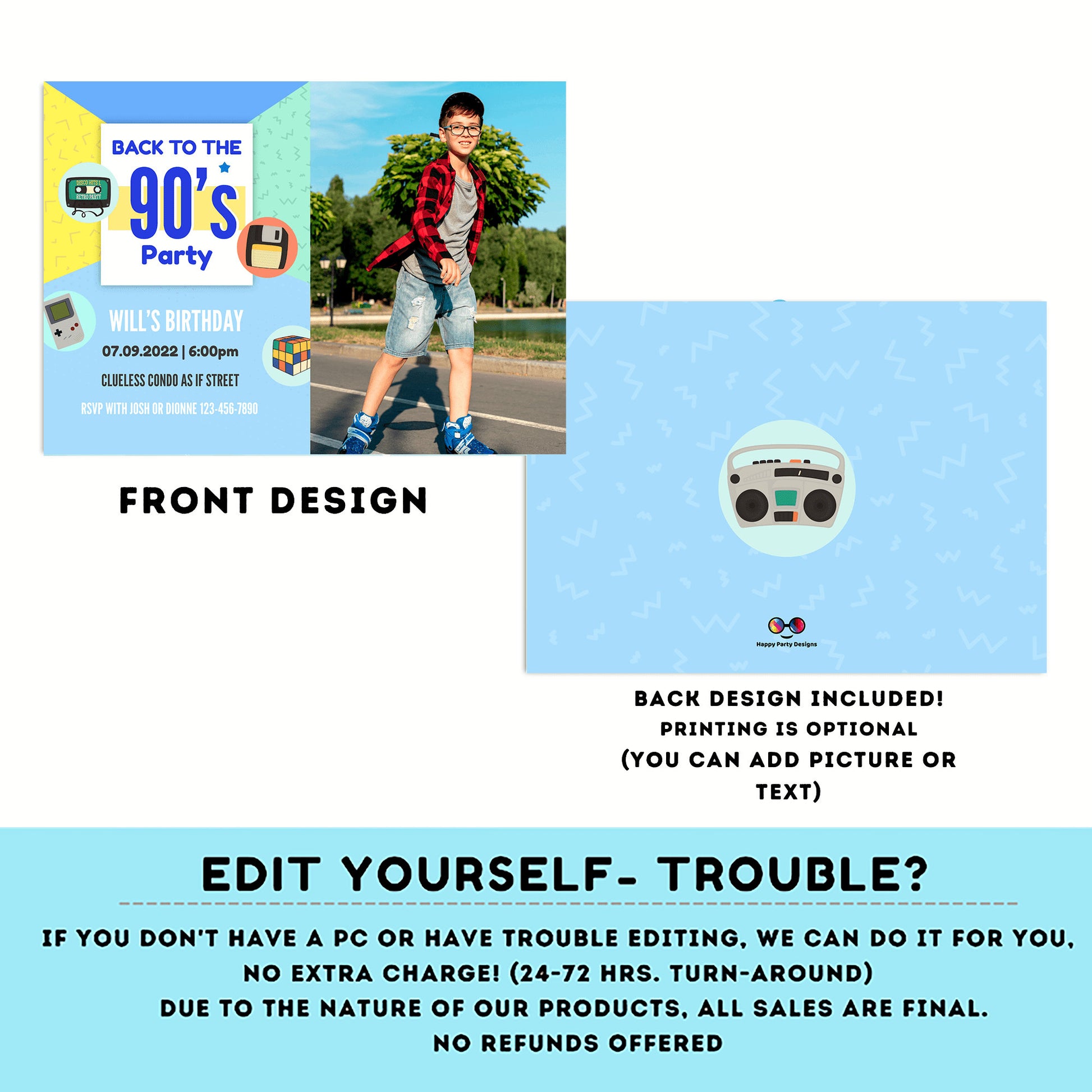 Editable 90s Birthday Invitation with picture | Retro Invitation | 90s Birthday Party Back to the 90s Theme | nostalgic