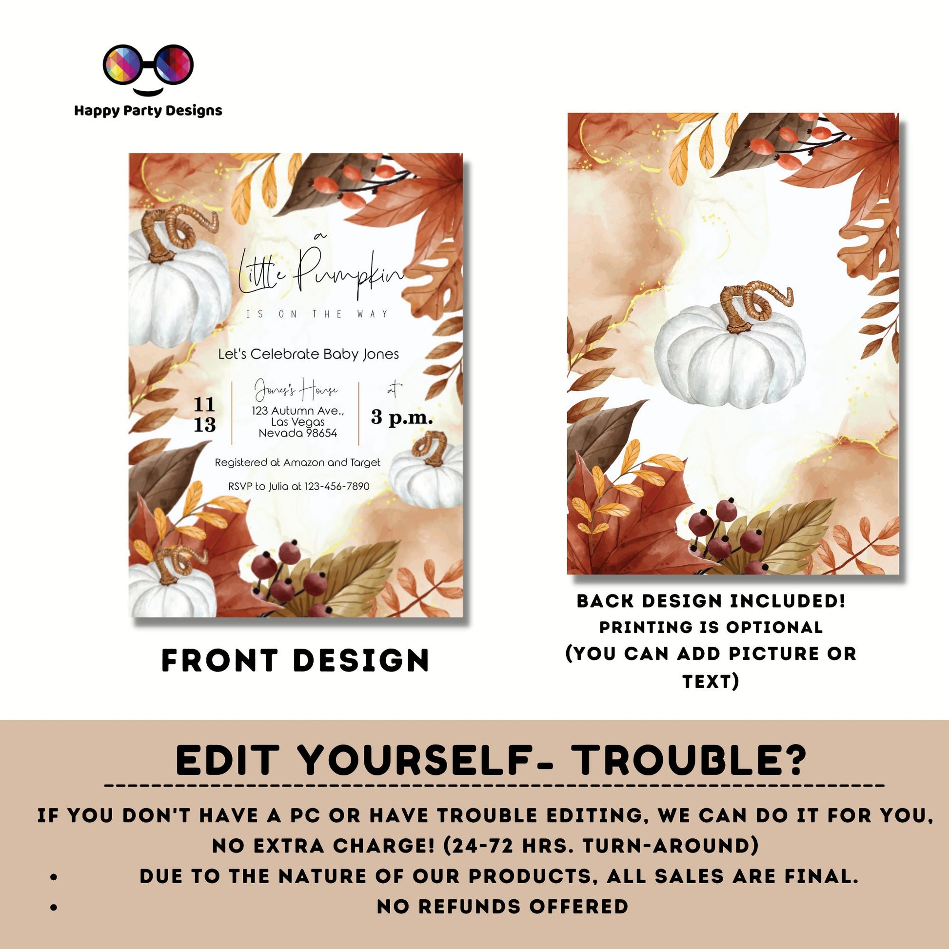Editable a little pumpkin is on the way invitation | Digital baby shower printable invite | Baby shower | Shower Invitation
