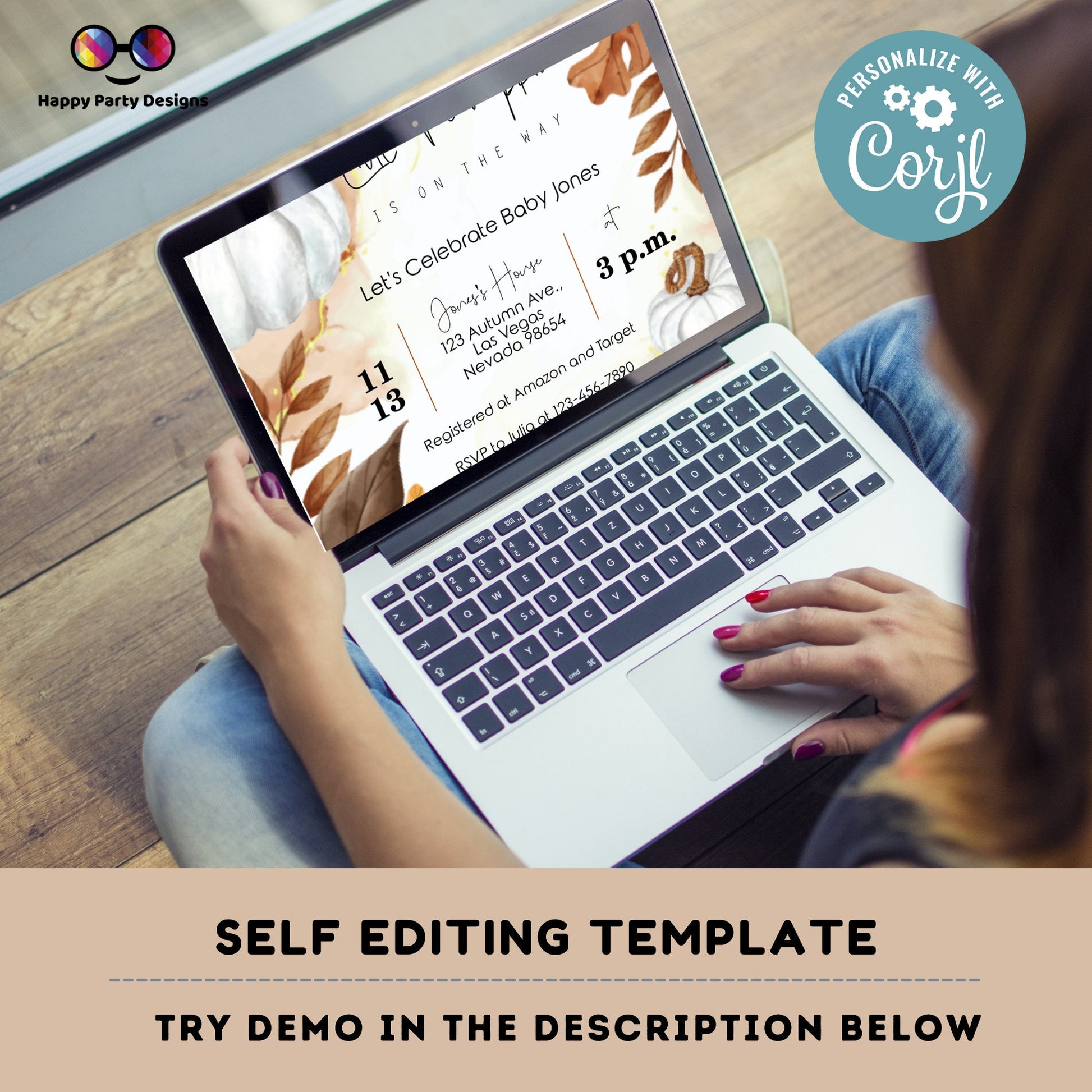 Editable a little pumpkin is on the way shower Invitation. Baby Shower . Editable template with Corjl.com