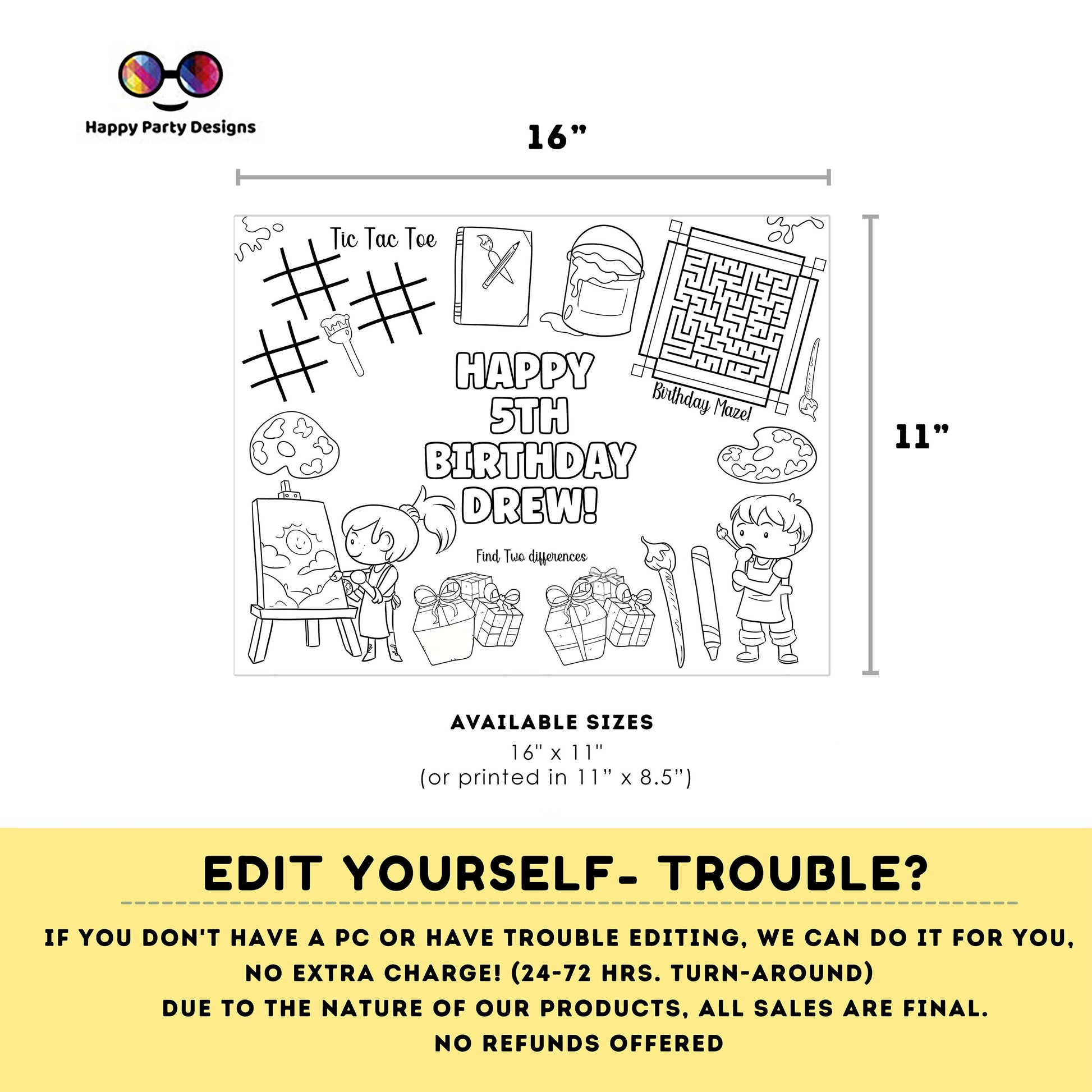 Use them as a placemat for your little guests, or as a fun activity, any kid will love it!