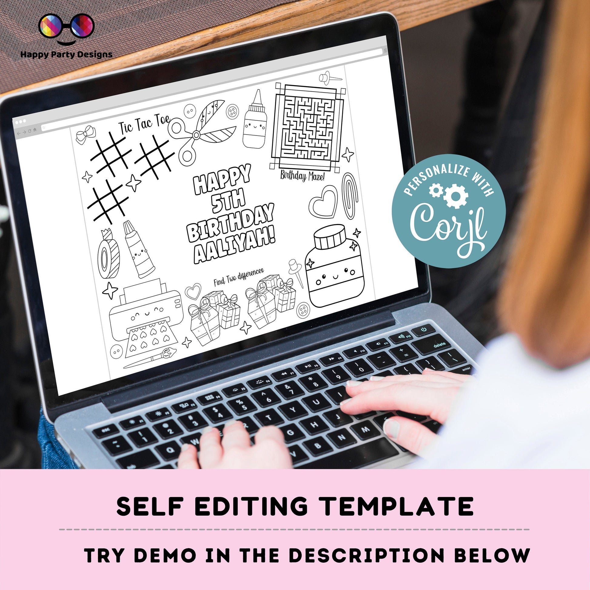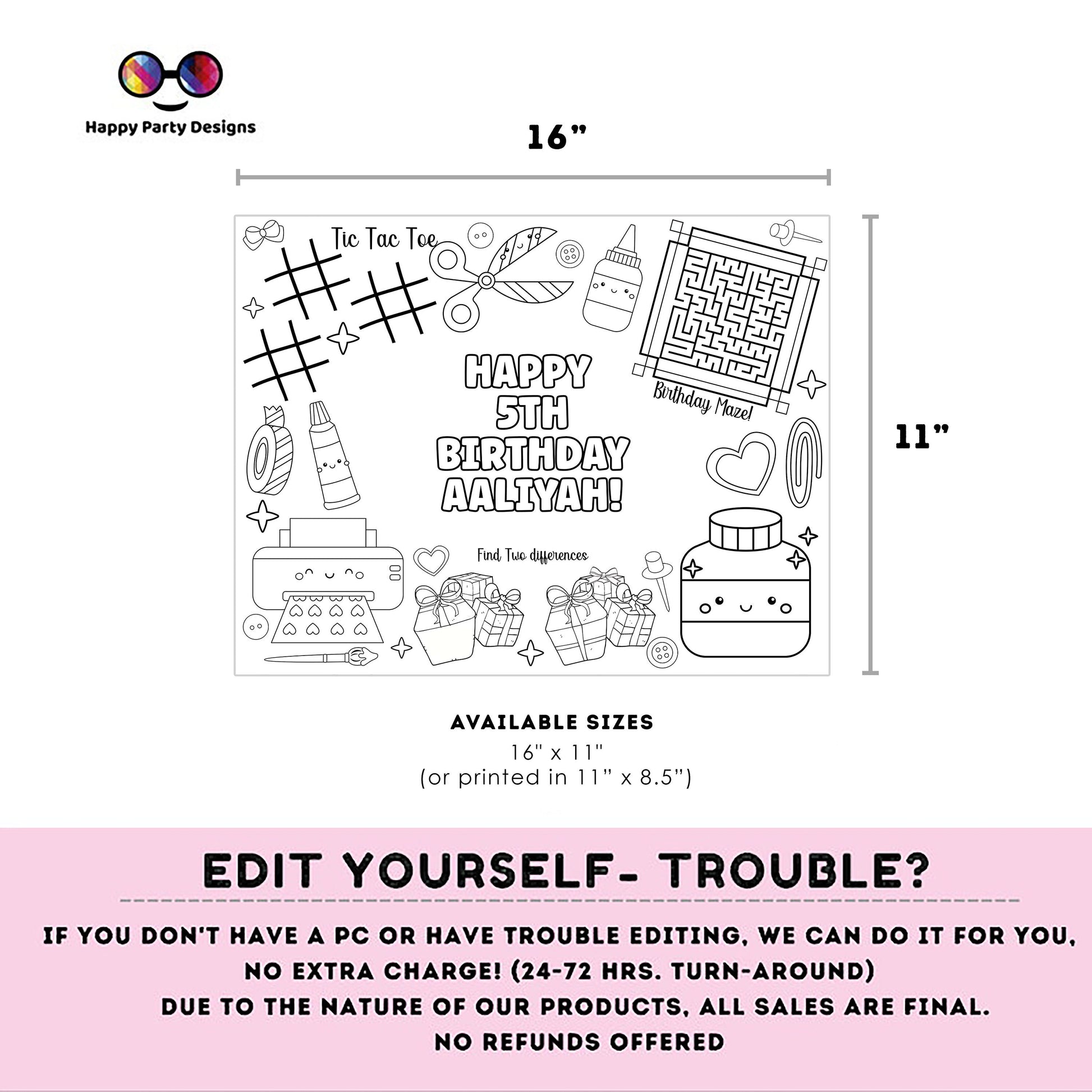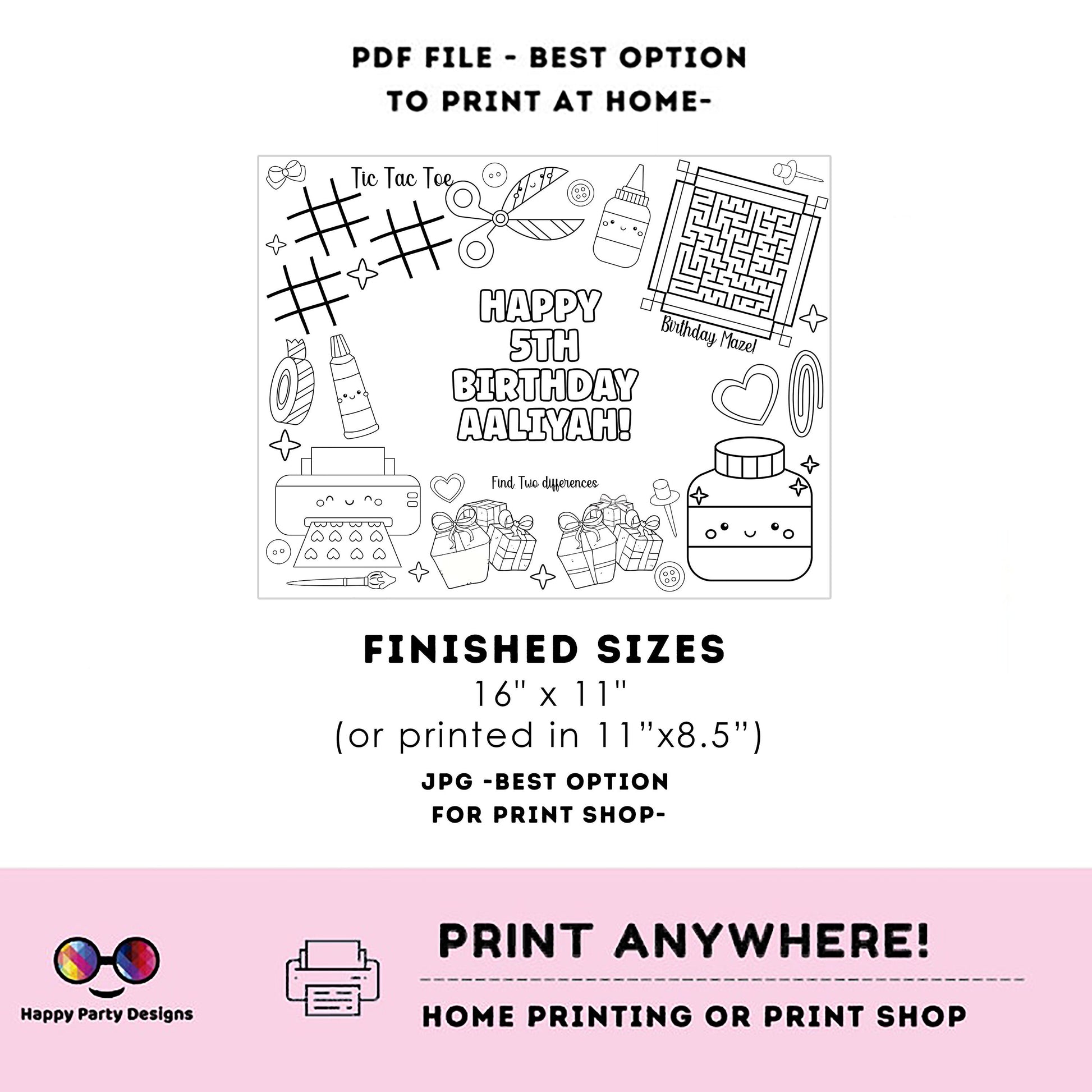 Editable Arts and Crafts Birthday coloring page | Placemat coloring page | Any Age | Crafty birthday Party Activity | bag filler #K162