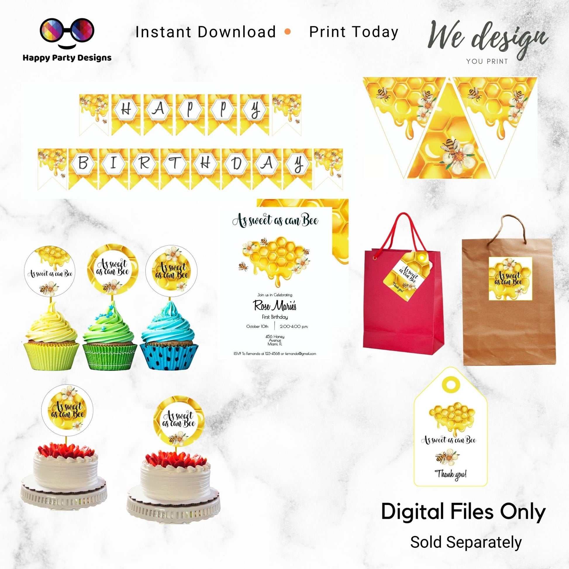 Editable As sweet as can Bee Invitation | First Birthday | Girl | Boy | Watercolor | Bee Birthday | Bee themed party | Instant Download