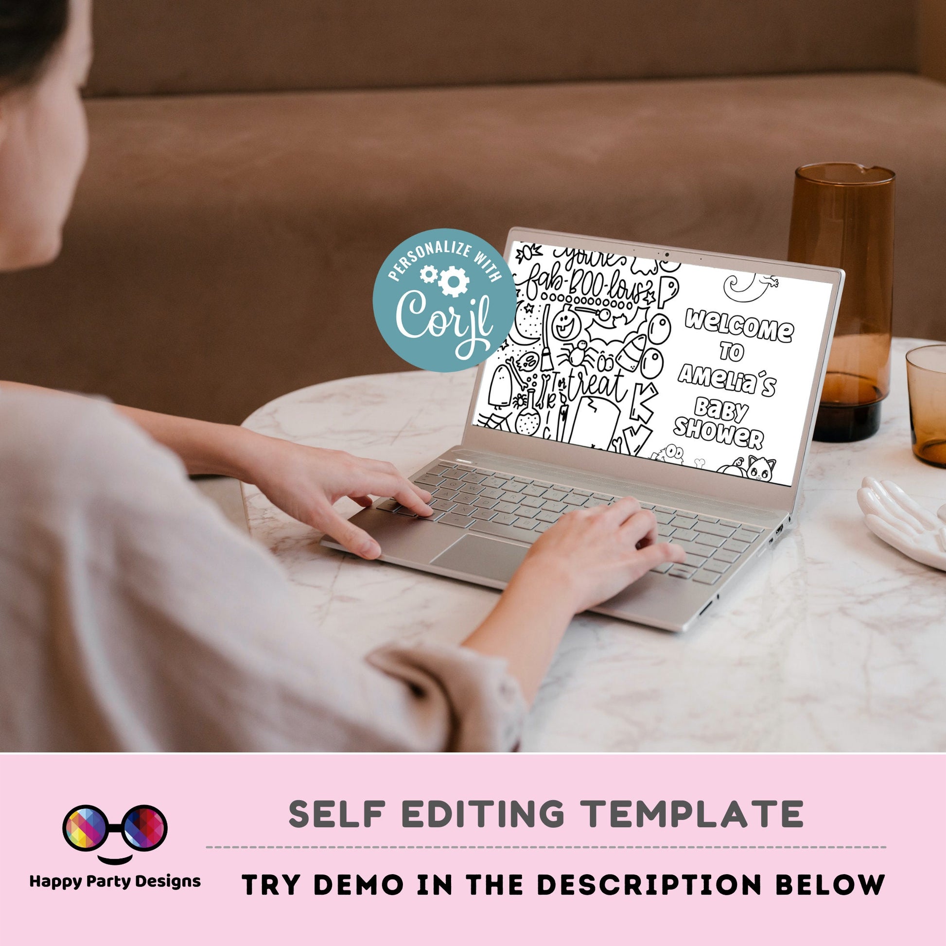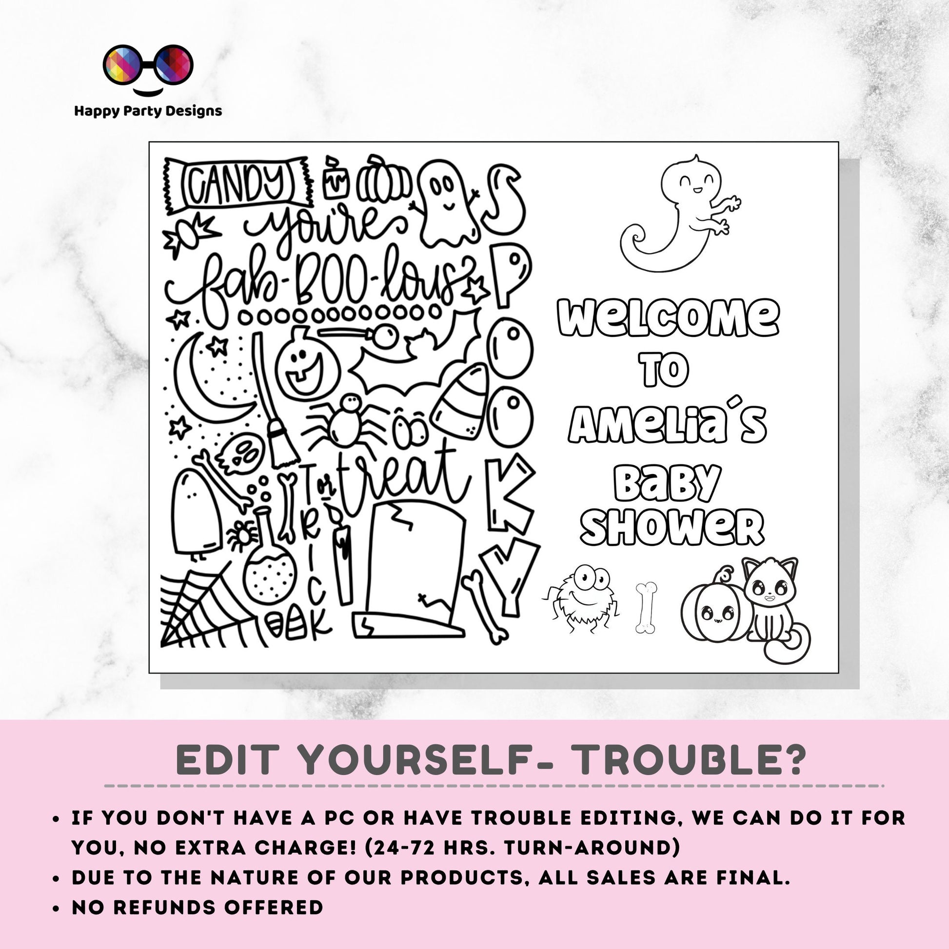 Editable Baby Shower coloring page | Halloween coloring page | Placemat | Halloween Baby Shower | Halloween Party Activity editable