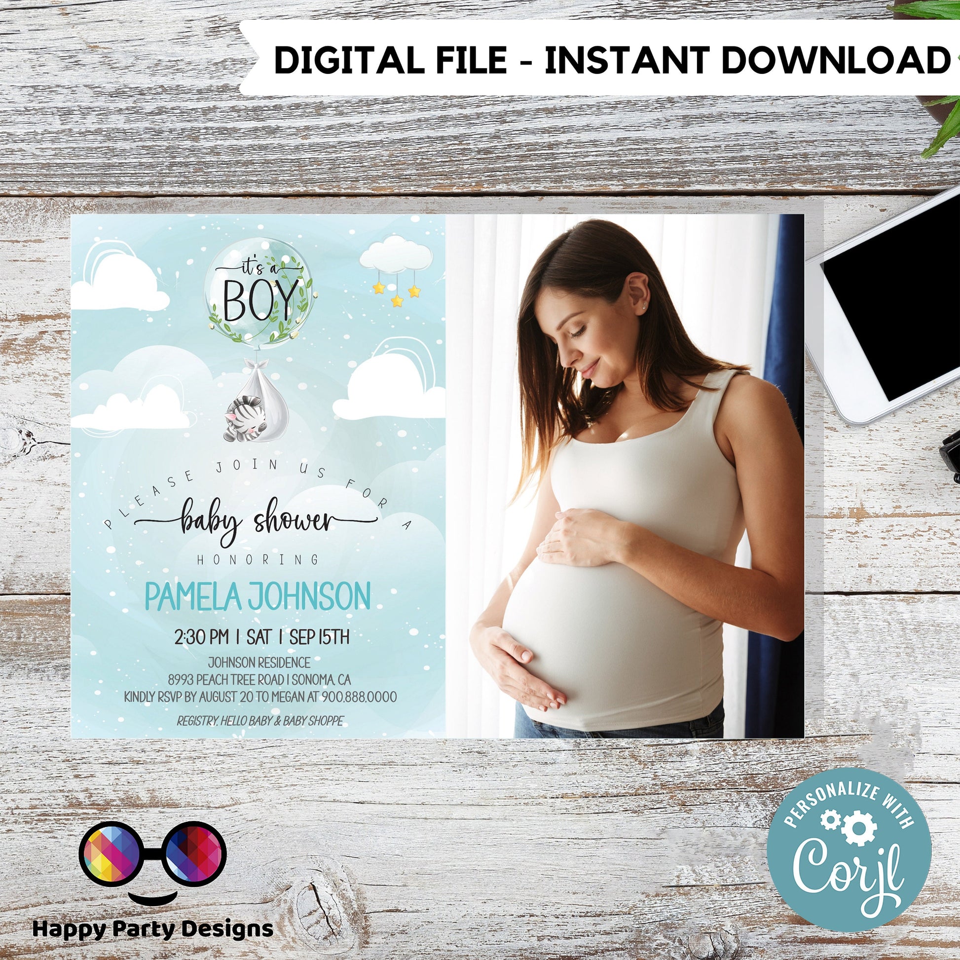 EDITABLE Baby zebra shower photo invitation | Zebra Invitation | Baby Shower | Instant Download | Baby Boy | Safari baby shower #B23