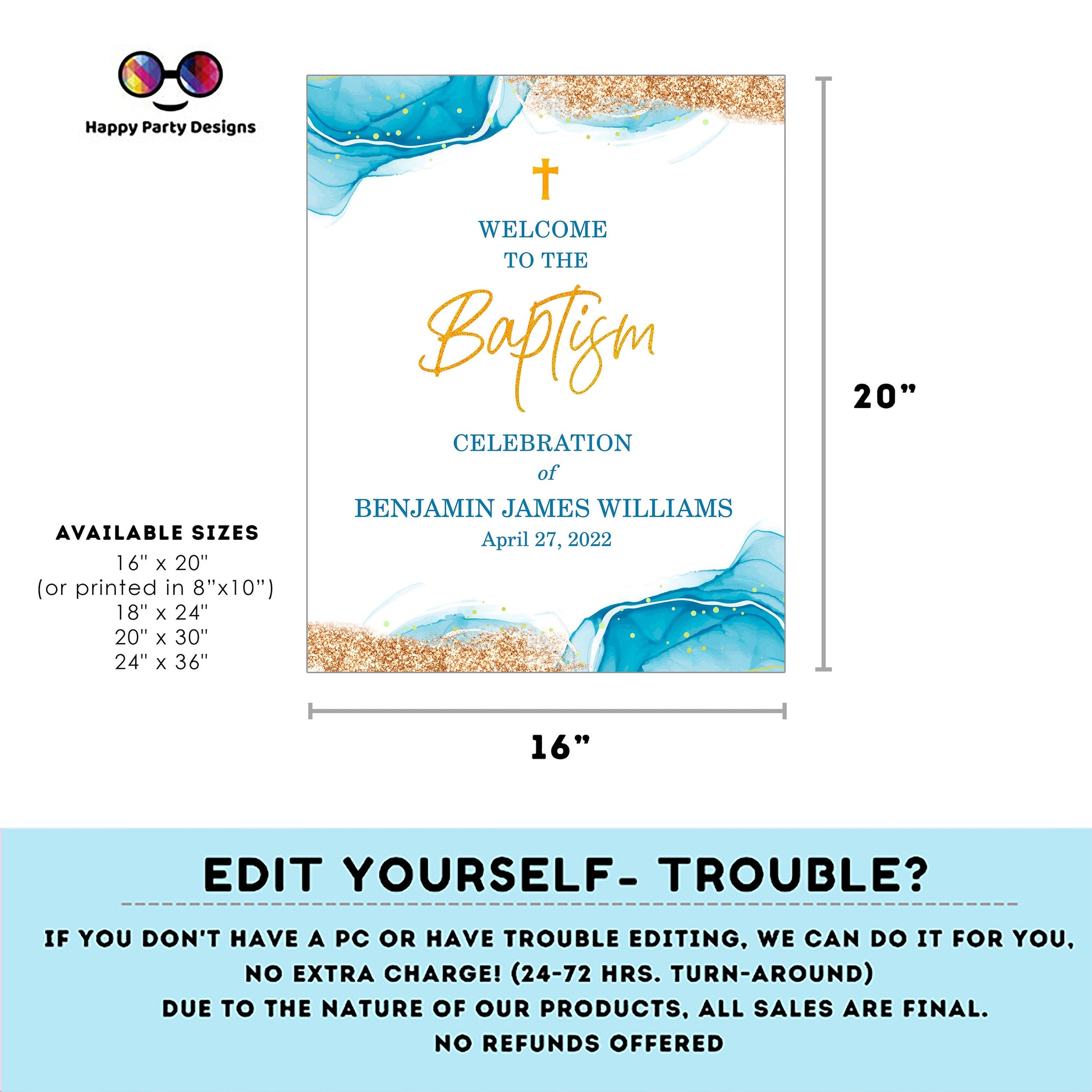 Editable Baptism Welcome Sign | Blue Watercolor | Christening Decorations | Baptism Boy | Christening Welcome Sign | Boy Baptism Sign