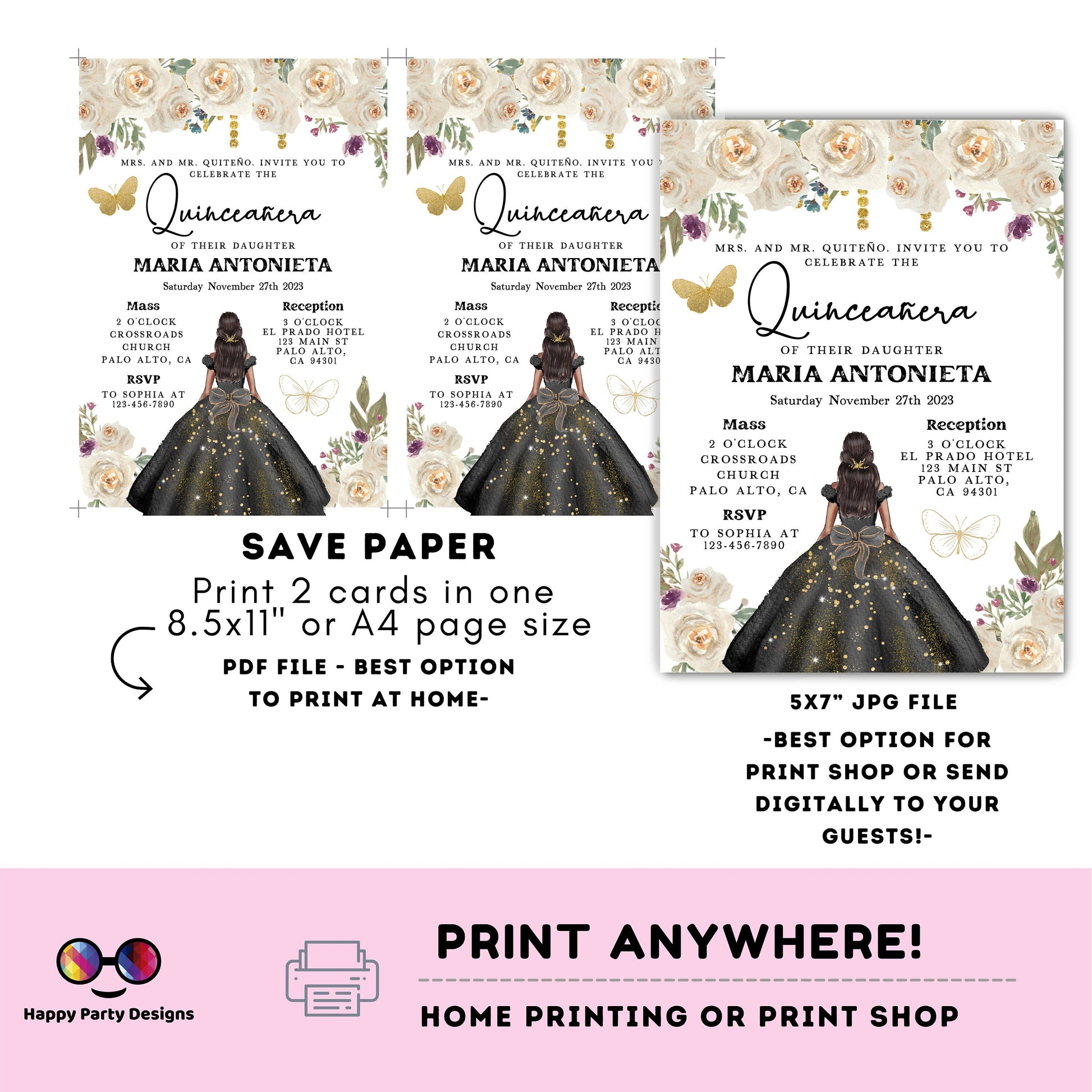 Editable BLACK dress Quinceañera Invitation | EDITABLE TEMPLATE Mis Quince 15 | 16th Birthday Instant Download | Girl Birthday #K276