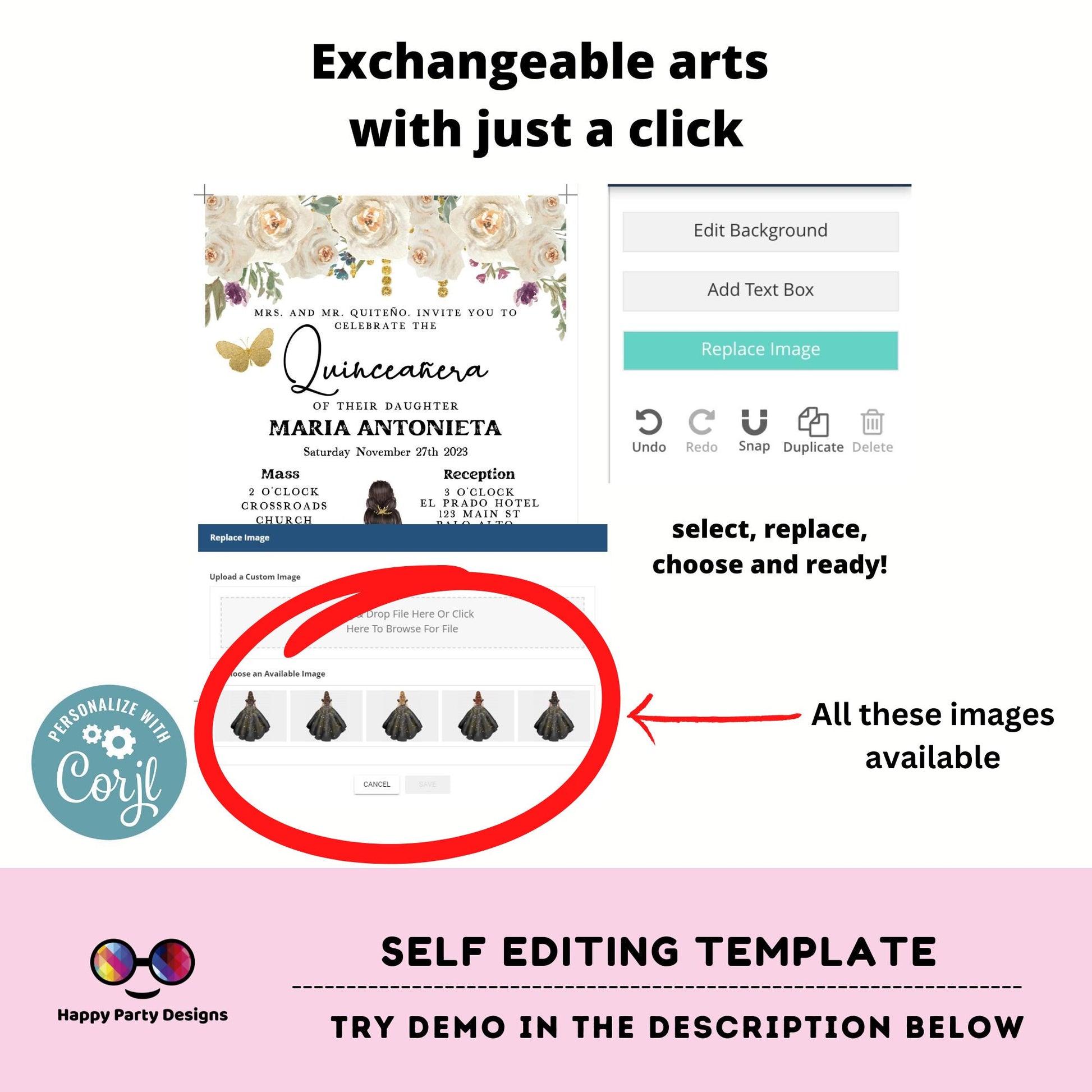 - 5X7" Editable digital Invitation (JPG & PDF Files). Exchangeable hair and skin tones available with your purchase.