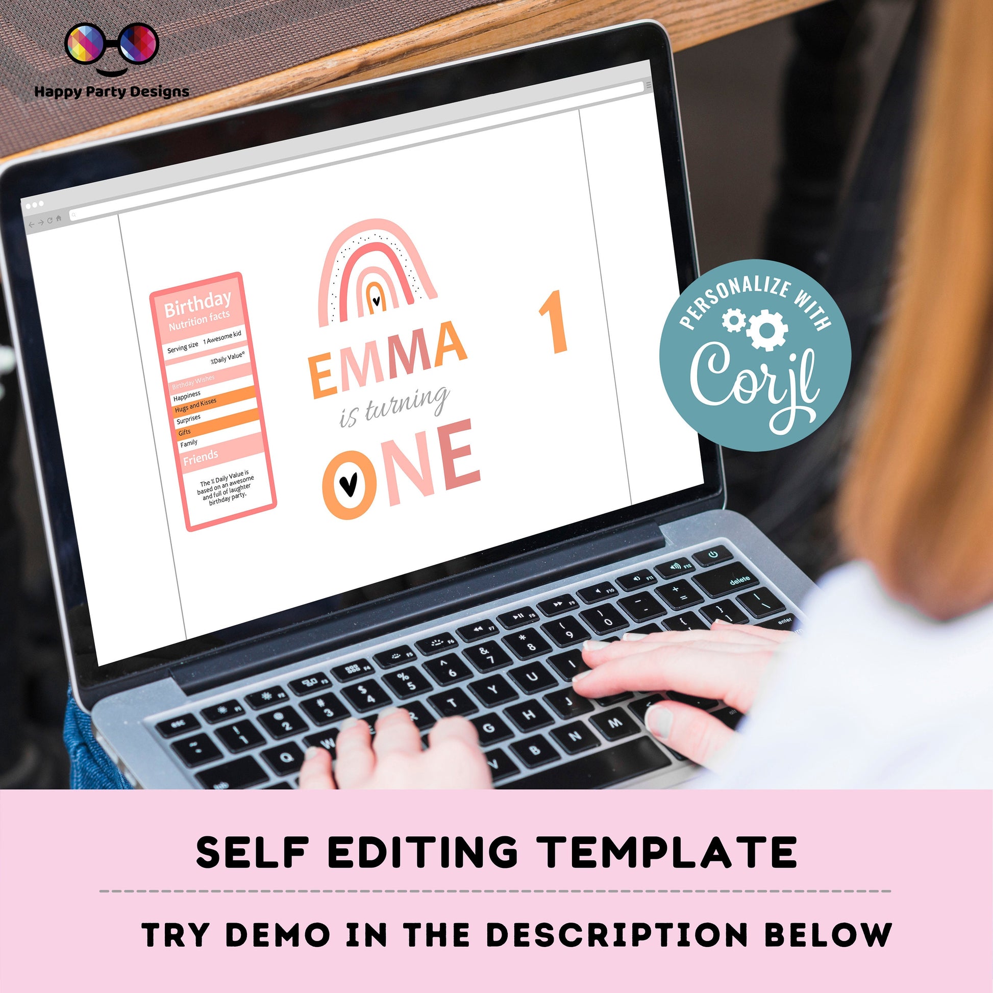 Editable rainbow Chips Bag. Birthday Girl. Editable template with Corjl.com