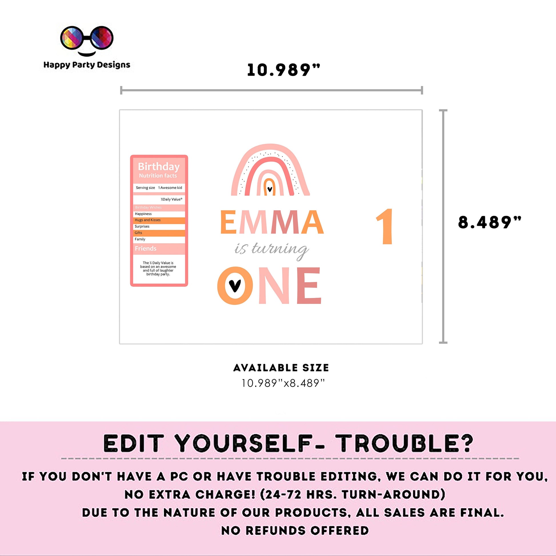 Editable Boho rainbow Chip Bag | Digital boho rainbow printable Chip Bag | Party Snack rainbow birthday girl | Personalized Favors Corjl