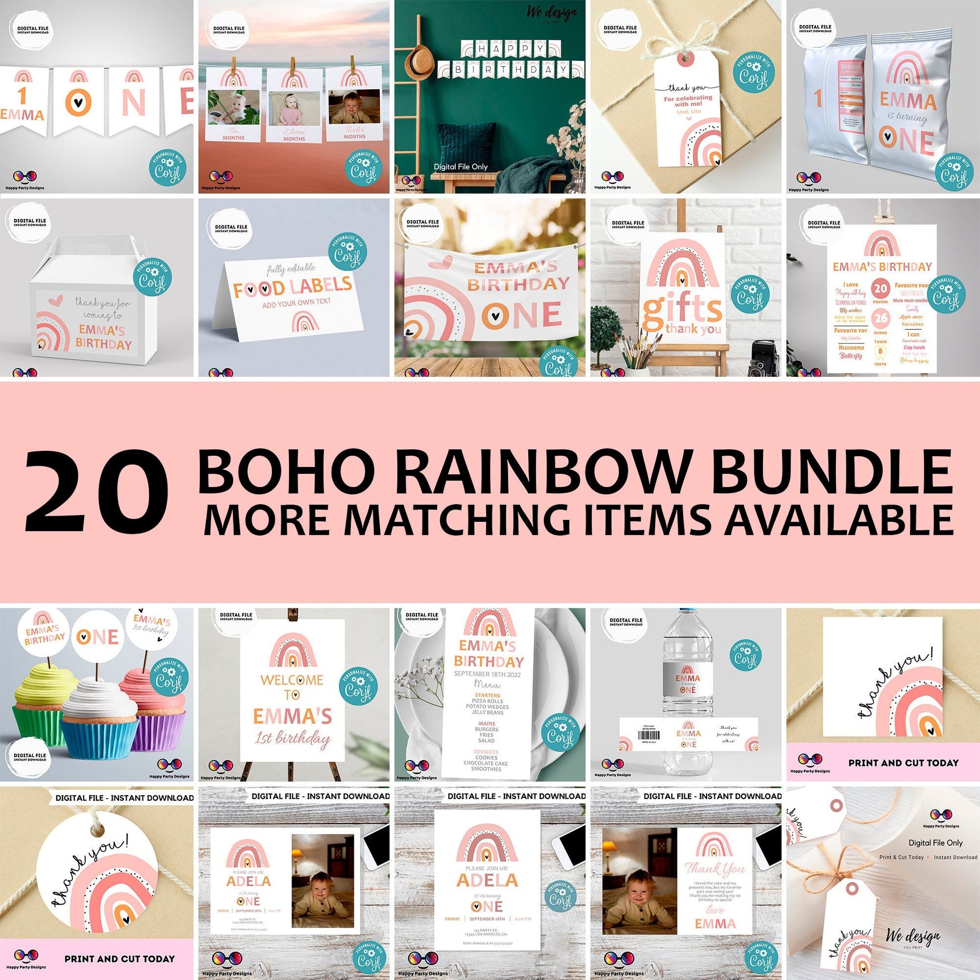 EDITABLE Boho Rainbow invitation bundle | First birthday | Boho Rainbow first Birthday | Boho rainbow Bundle | Boho rainbow party decor #K19