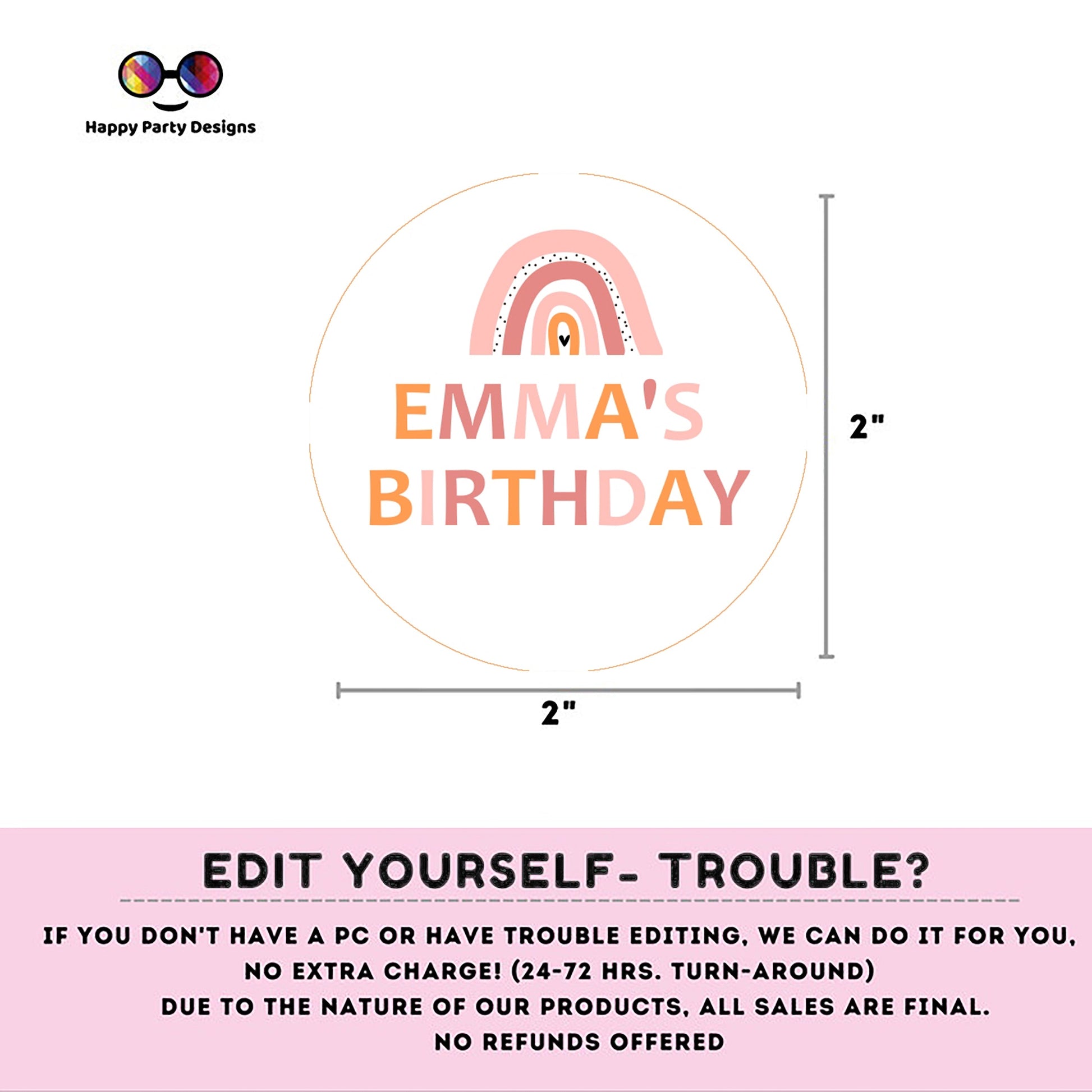 The products you purchase from Happy Party Designs are for PERSONAL USE ONLY and cannot be resold and/or distributed for any reason. You may not alter in any way images or other content in this shop without specific permission from Happy Party Designs copyrighted. Mass production, file sharing, selling and commercial use of the files is not permitted. All rights reserved.