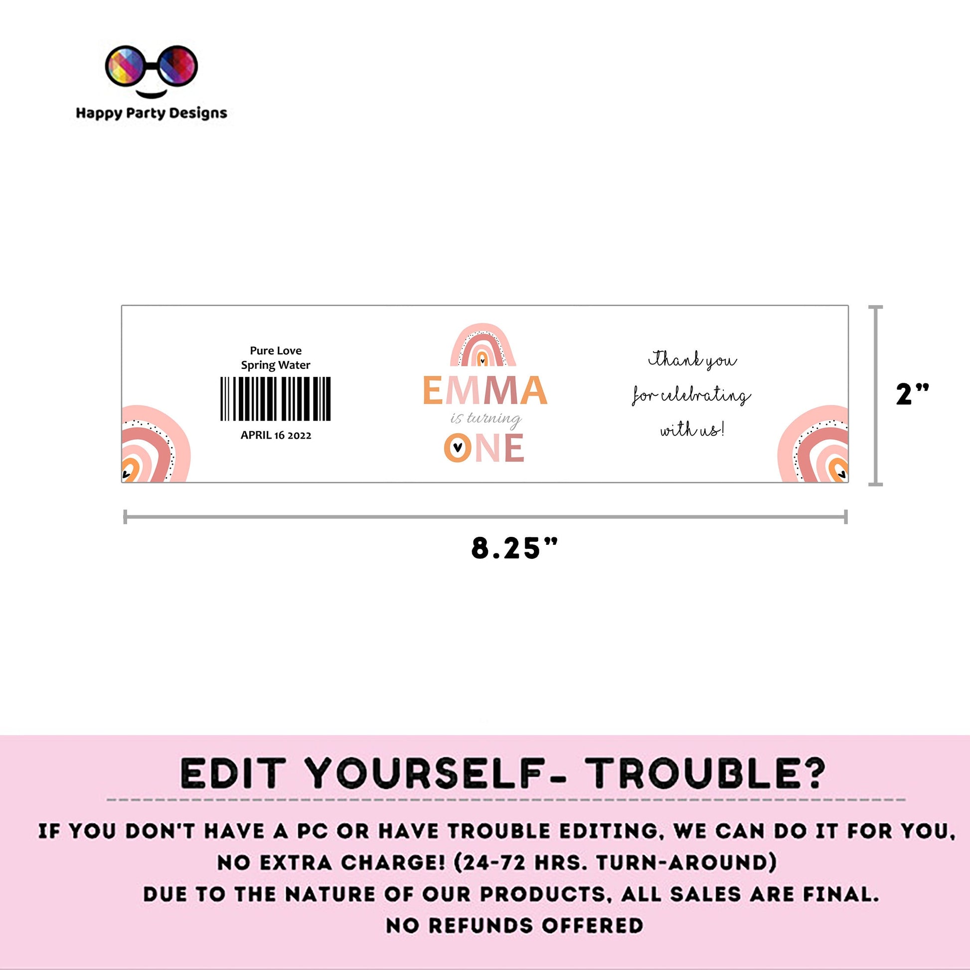 EDITABLE Boho Rainbow water bottle labels, Modern Rainbow Birthday, Muted Rainbow water bottle, Rainbow Birthday decorations