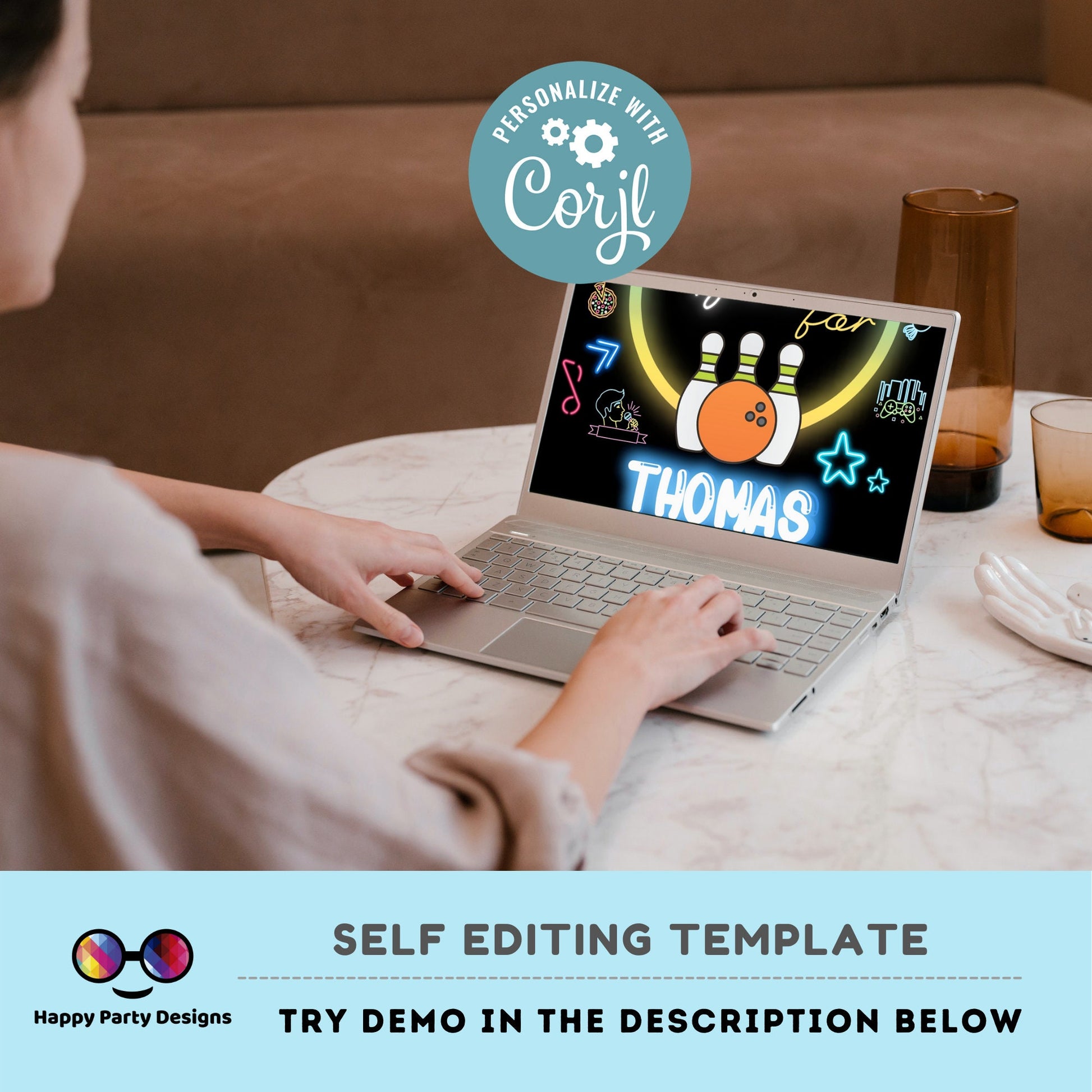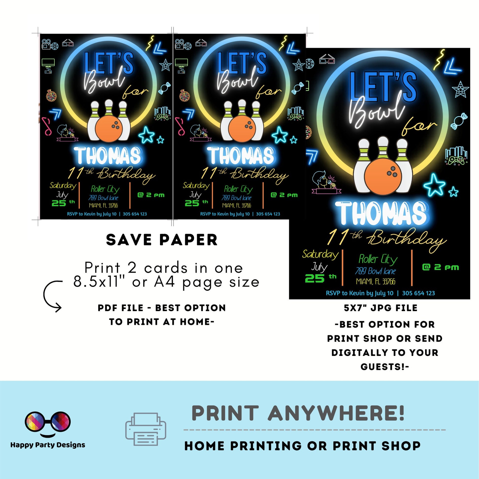 EDITABLE Bowling Birthday Boy | Bowling Boy Invitation | Birthday Boy | Instant Download | Digital | Personalize Online | neon glow Boy