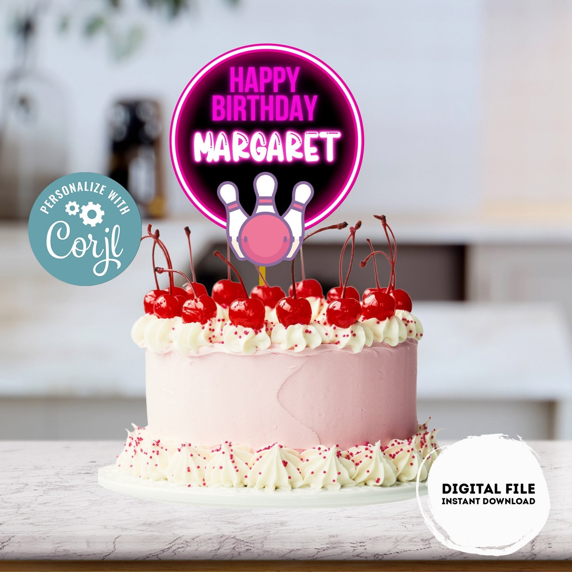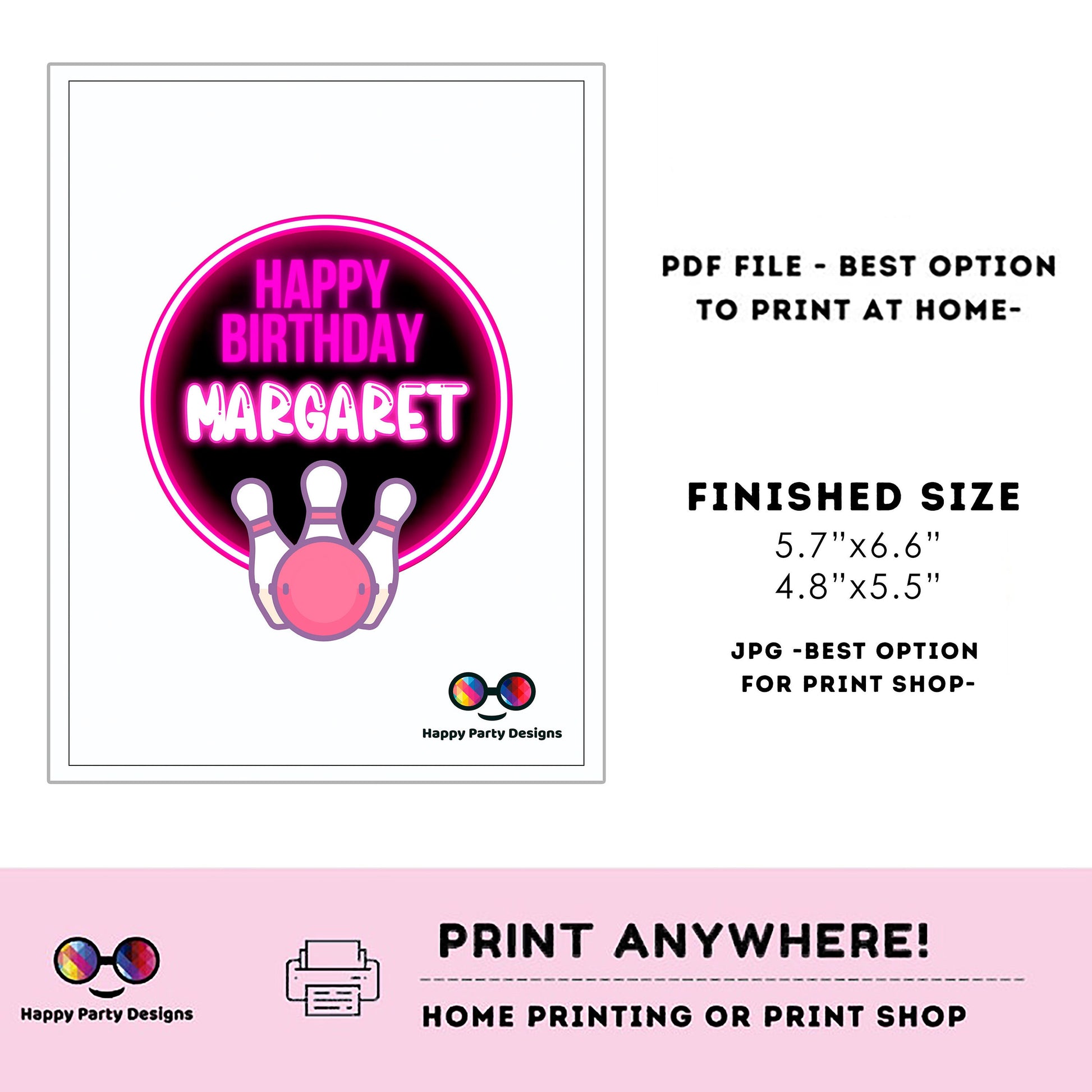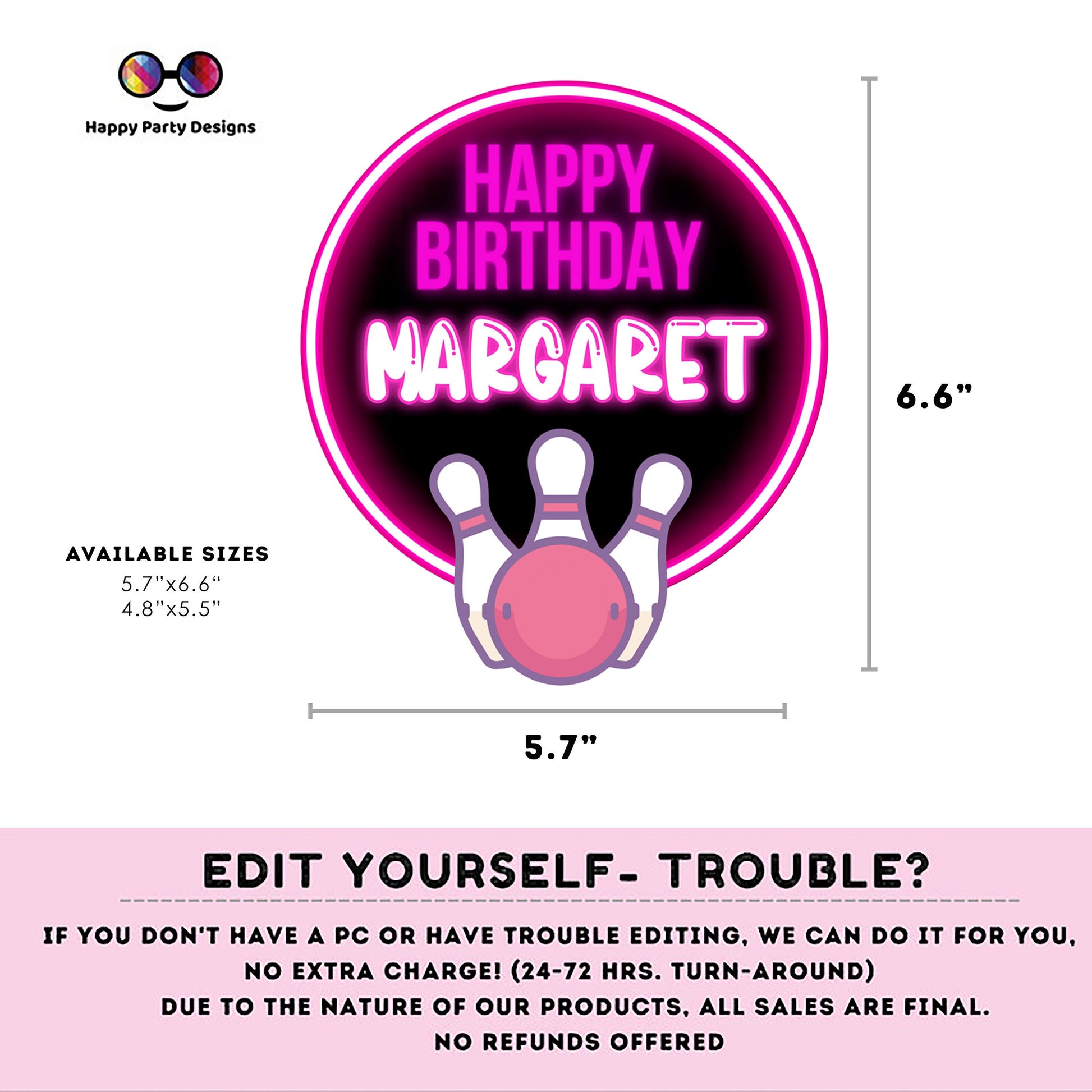 Bowling Cake Topper | Editable Cake Topper | Printable Template | Editable Neon Bowling Cake Topper | Neon Bowling Cake Topper | Neon Bowling Cake Topper | Birthday Girl | Cake Topper | Bowling Birthday Themed | Instant download