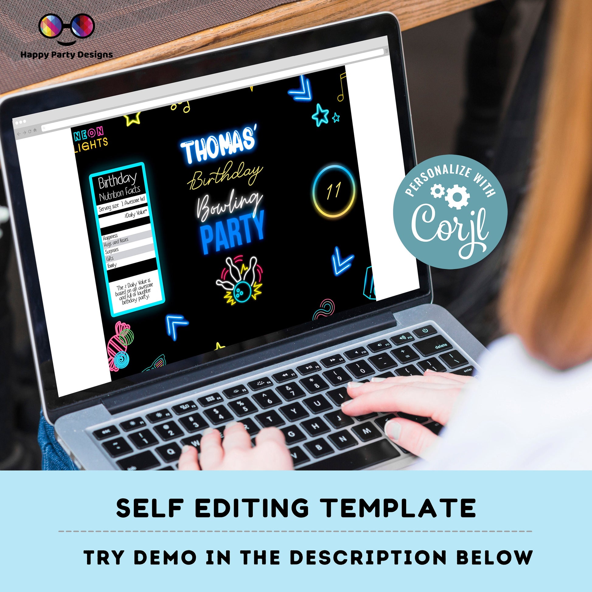 Editable Bowling Chip Bag. Birthday boy Birthday Girl. Editable template with Corjl.com
