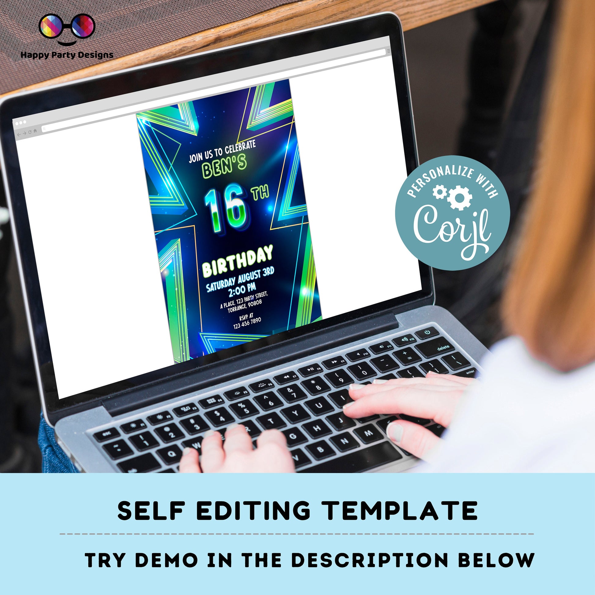 EDITABLE Boy 16th birthday invitation | Neon Glow in the dark Party | Birthday Boy | 16th Neon Green Blue Birthday | glow party #K185