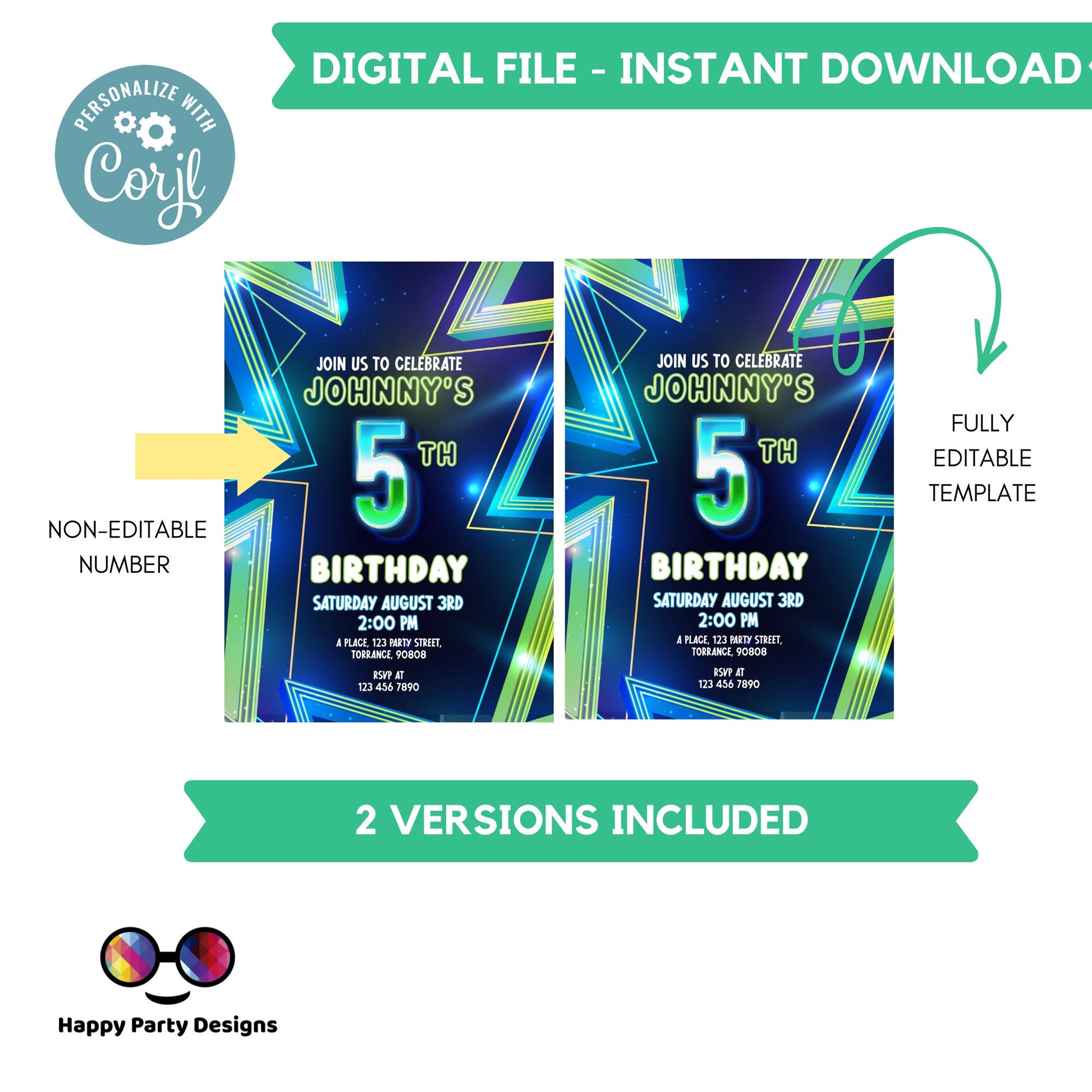 Boy 16th birthday invitation Neon Glow in the dark Party 16th Neon Green Blue Birthday EDITABLE invitation. Neon Light Birthday Invitation, Editable Template, neon bday Invite, Teen, Blue, ANY AGE, Let's Party, Instant Download.
