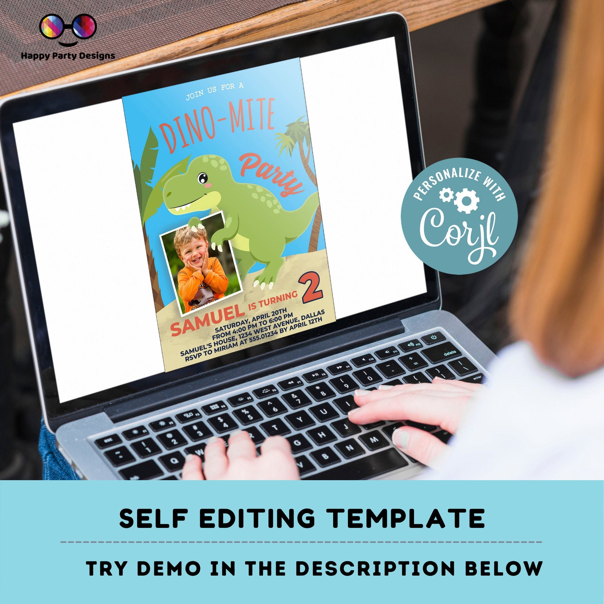 DINOSAUR Boy birthday invitation. EDITABLE TEMPLATE WITH CORJL.COM